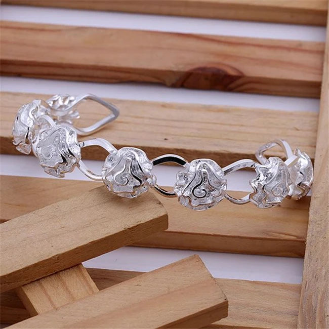 Elegant and stylish rose flower bangles crafted from 925 Sterling Silver. These adjustable cuff bracelets are perfect for parties and make a great gift for women.