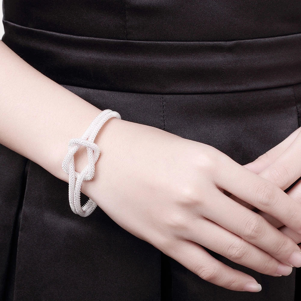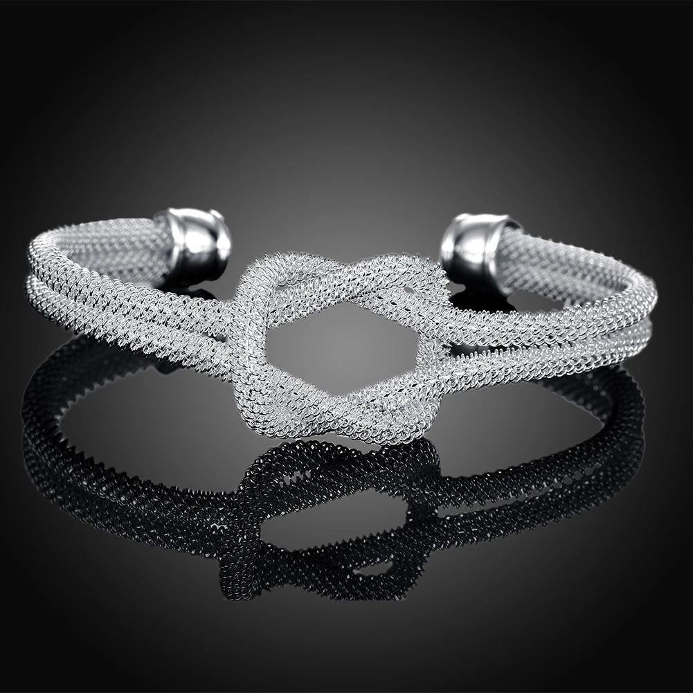 This beautiful bracelet is made of high-quality 925 sterling silver, featuring a knotted net design. It is adjustable and perfect for parties and weddings.