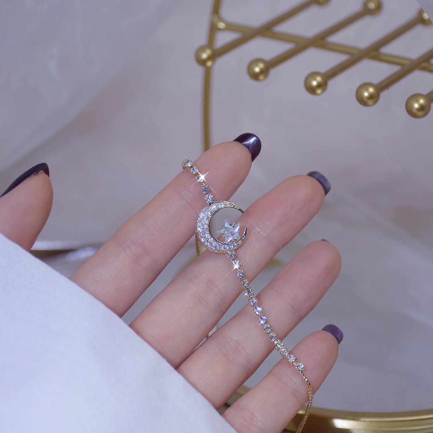 Flashing diamond zircon star and moon bracelet, perfect holiday gift for women.