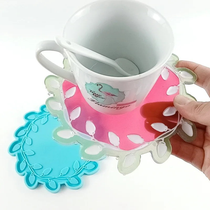 Create beautiful lace flower coasters with this silicone mold, perfect for resin jewelry making. Ideal for DIY projects.