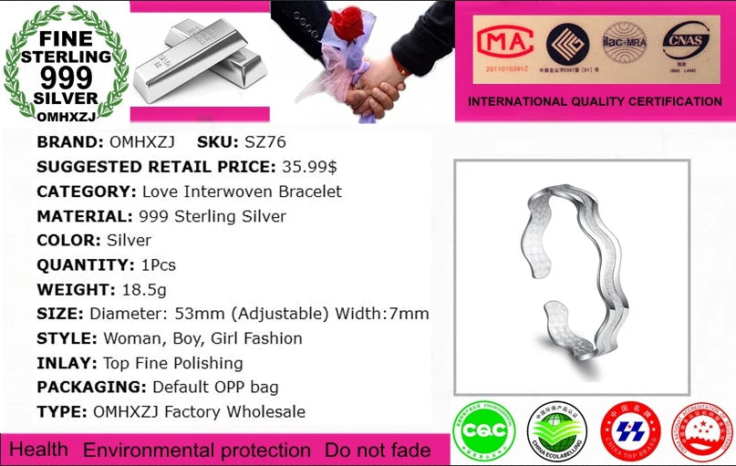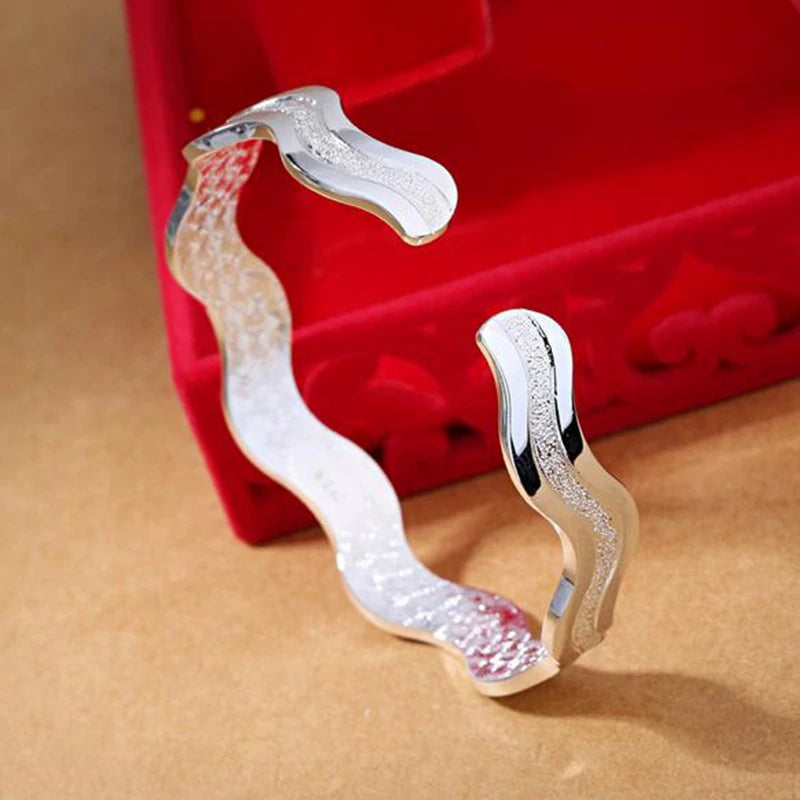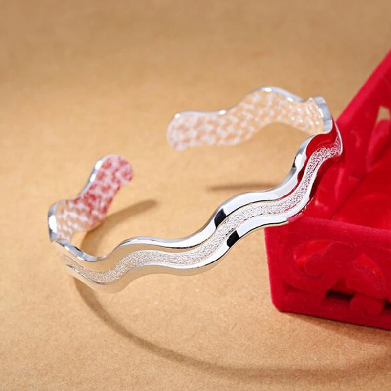 This stunning bracelet bangle is made of 999 sterling silver, featuring an interwoven water ripple design. It is a perfect gift for women and children.