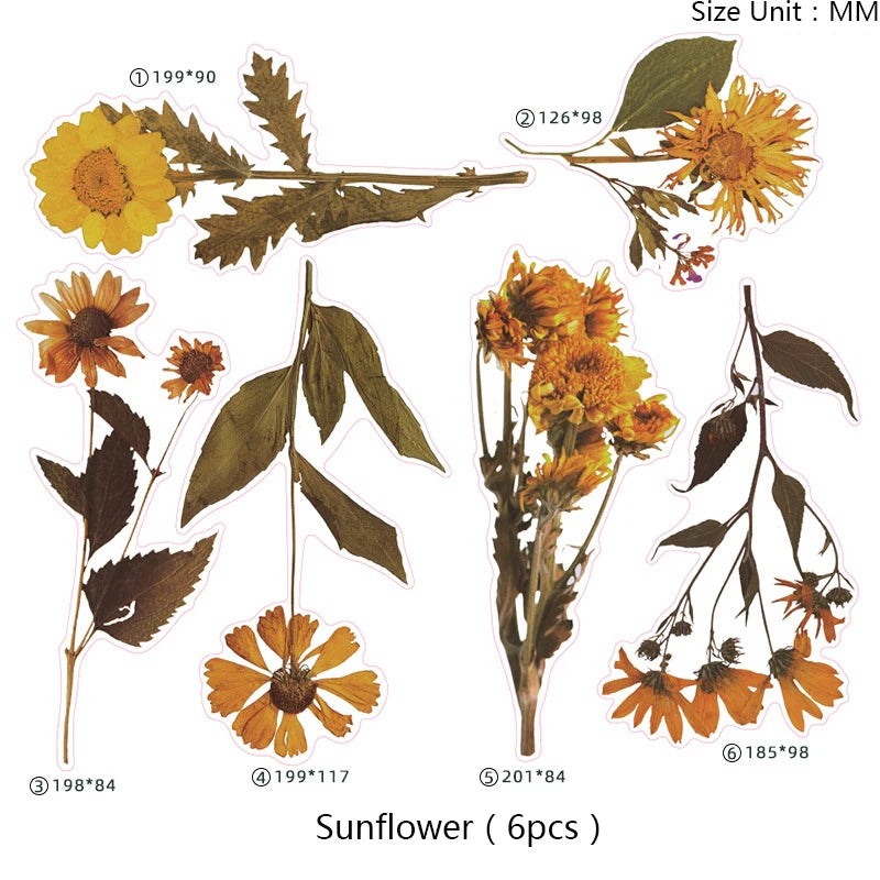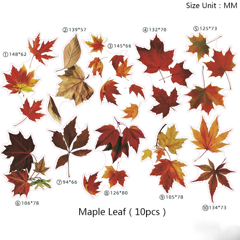 - Assorted stickers featuring maple leaves, sunflowers, roses, wheat, and daisies