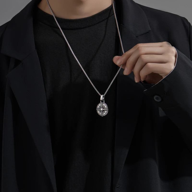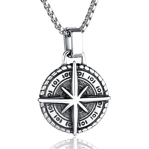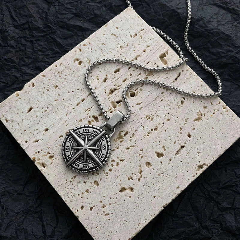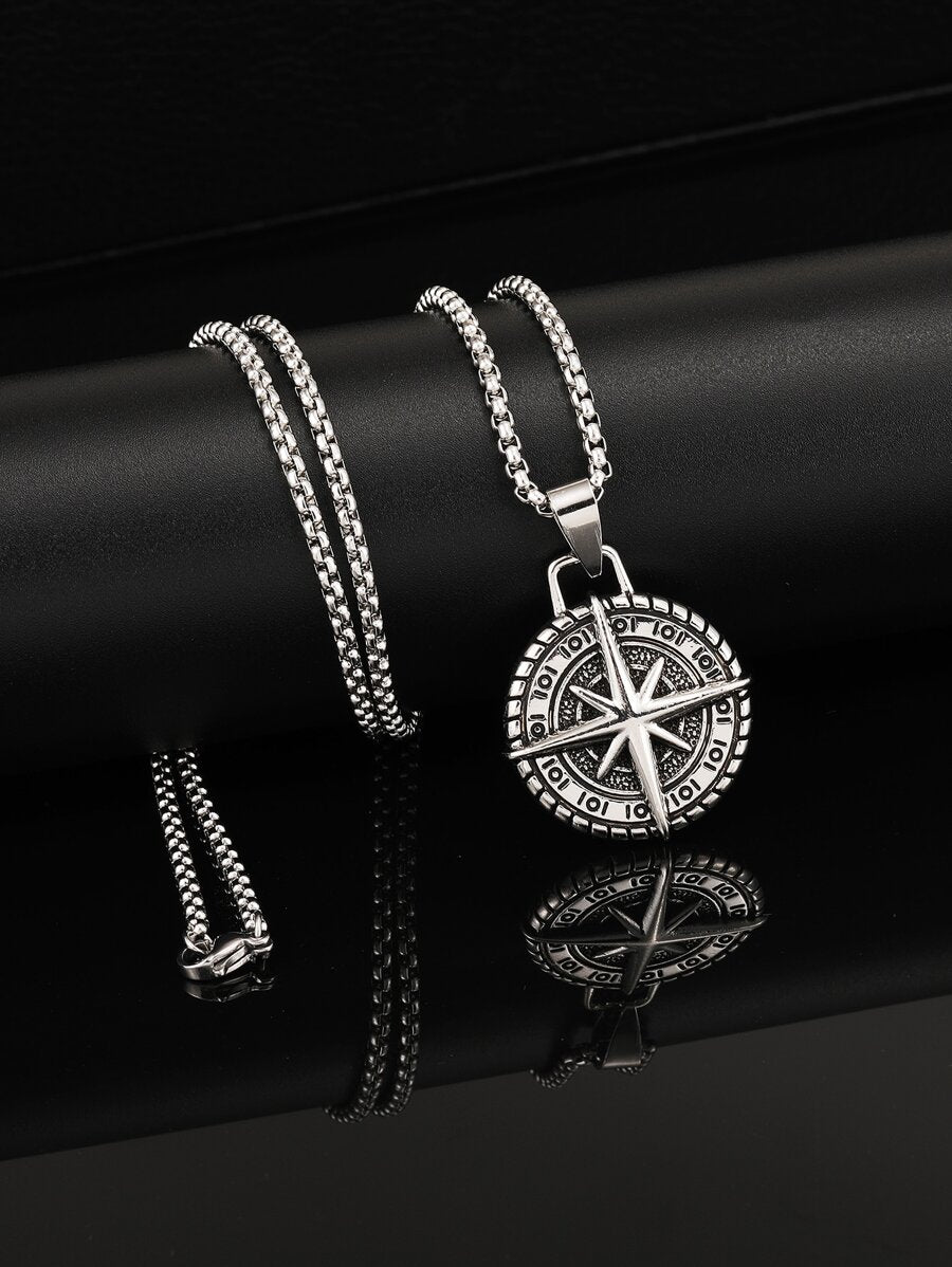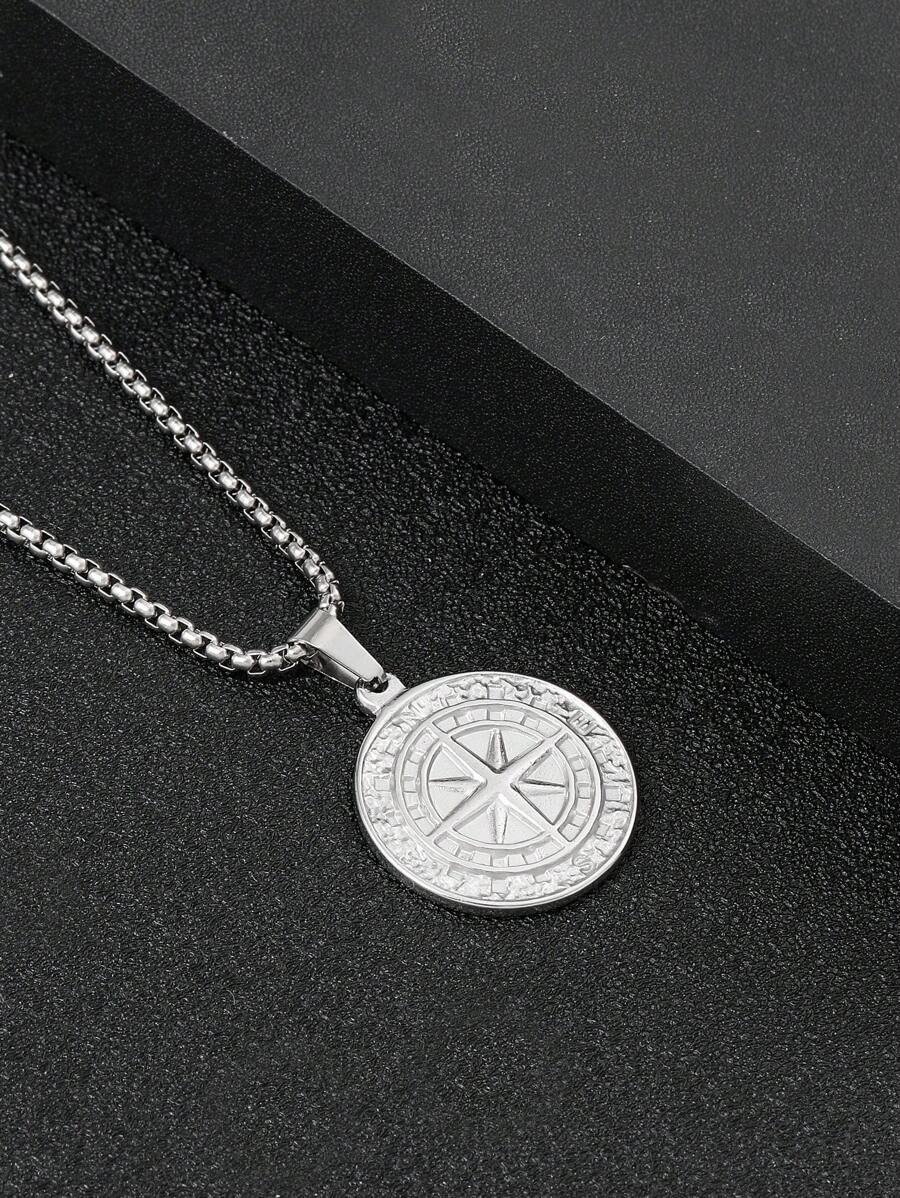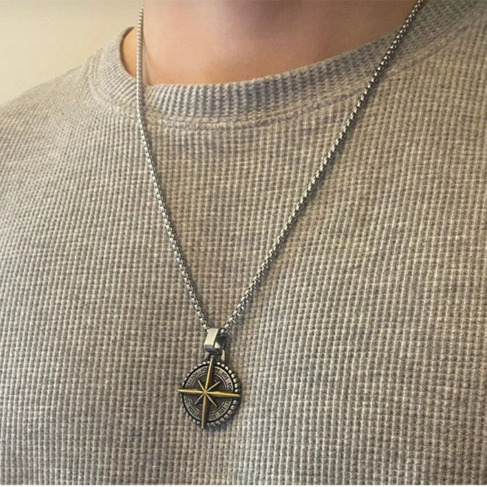The Men's Stainless Steel Compass Cross Pendant Necklace with Coin Design combines rugged style with symbolic meaning, making it an exceptional accessory for men. Crafted from high quality stainless steel, this pendant maintains its shine over time. The pendant features an intricately designed coin that showcases a compass and cross motif, symbolizing guidance and faith. The compass cross pendant is both striking and meaningful, with a detailed engraving that captures the essence of exploration and spirituality. Accompanied by a sturdy yet stylish stainless steel chain, the necklace complements the pendant perfectly, providing a balanced and cohesive look. he necklace’s modern design allows it to be worn with a variety of outfits, from casual wear to more formal attire, making it a versatile addition to any wardrobe.
