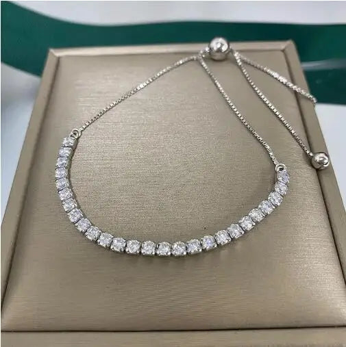 Elegant bracelet featuring round cut lab diamonds set in 18K plated sterling silver. Adjustable chain for a perfect fit.