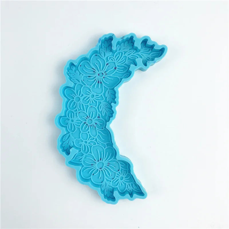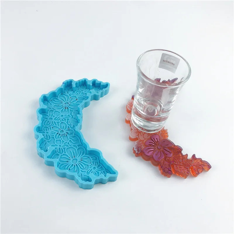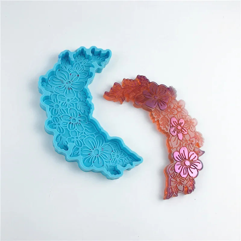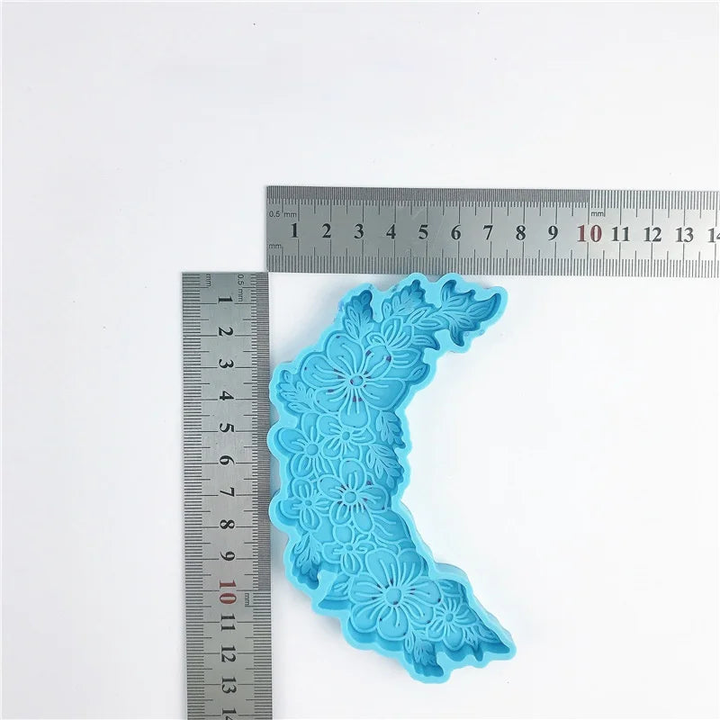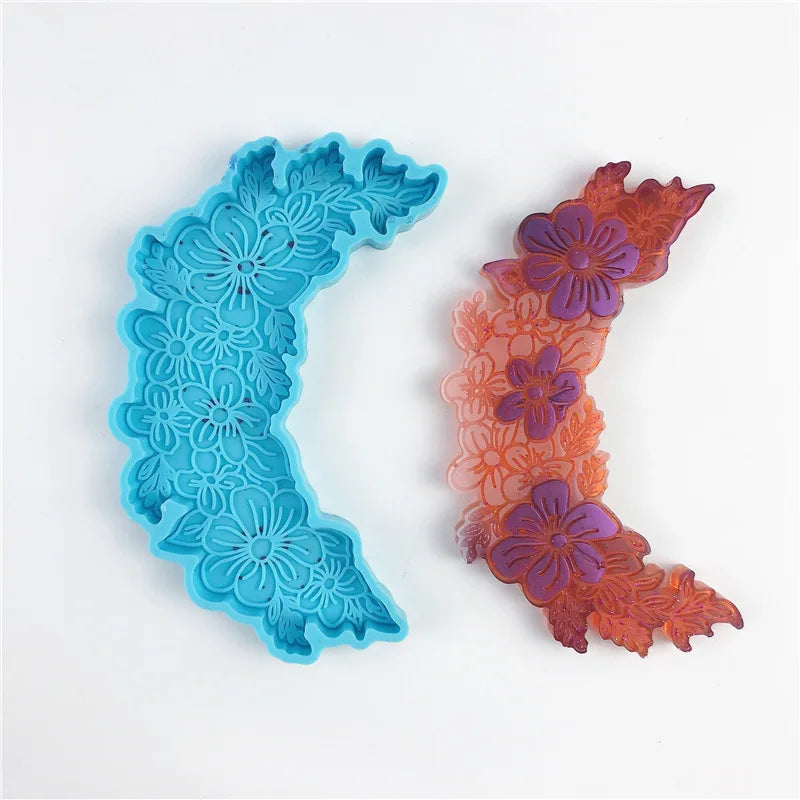 Create beautiful moon-shaped coasters with flower design using this silicone mold. Perfect for epoxy resin crafts.