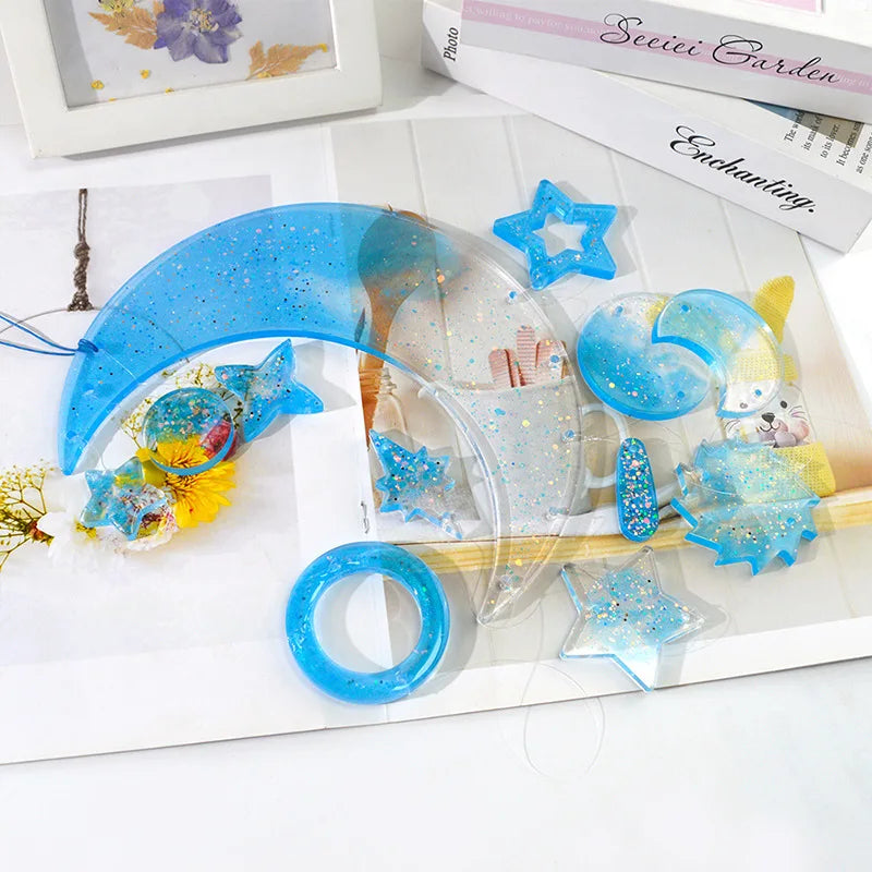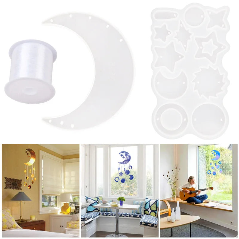 Create beautiful moon and star wind chimes with this silicone mold. Perfect for casting resin to make unique wall hanging decorations or pendants for your home. Let your creativity shine!