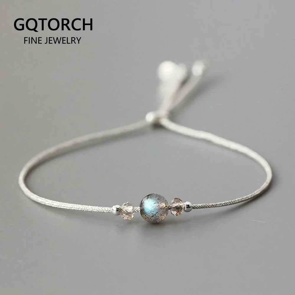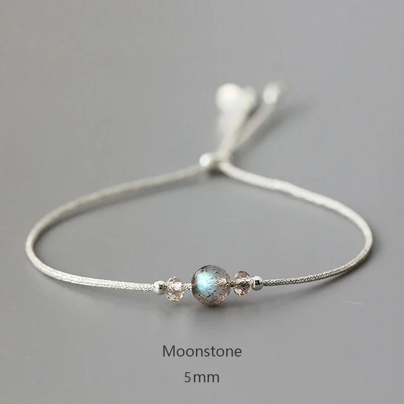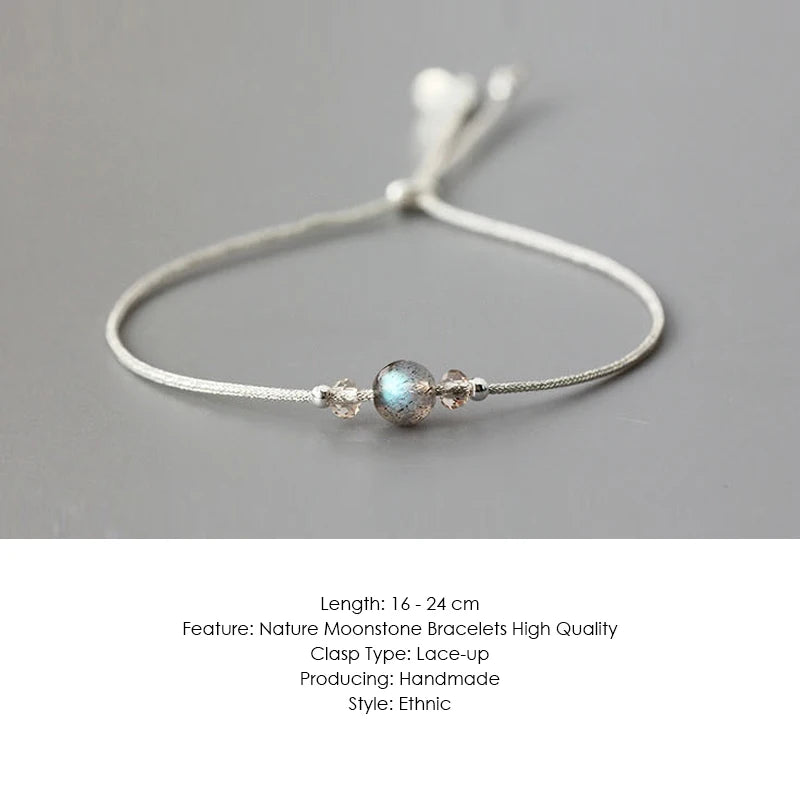 Moonstone Bracelet 925 Silver with Crystal Beads for Women