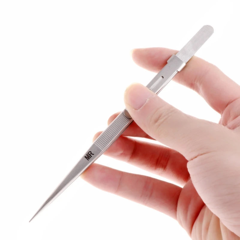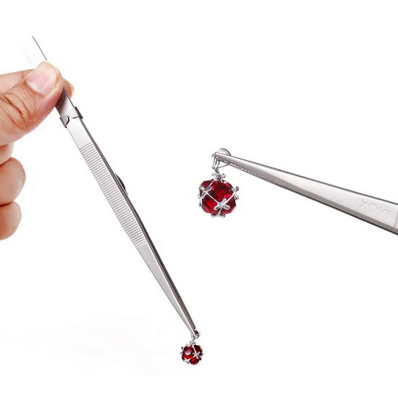 This MR jewelry tweezers with lock catch are perfect for picking up tiny diamonds, beads, and other small items. Made of stainless steel, it is durable and adjustable, making it a convenient craft tool for DIY projects.