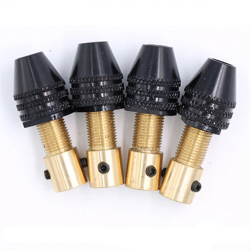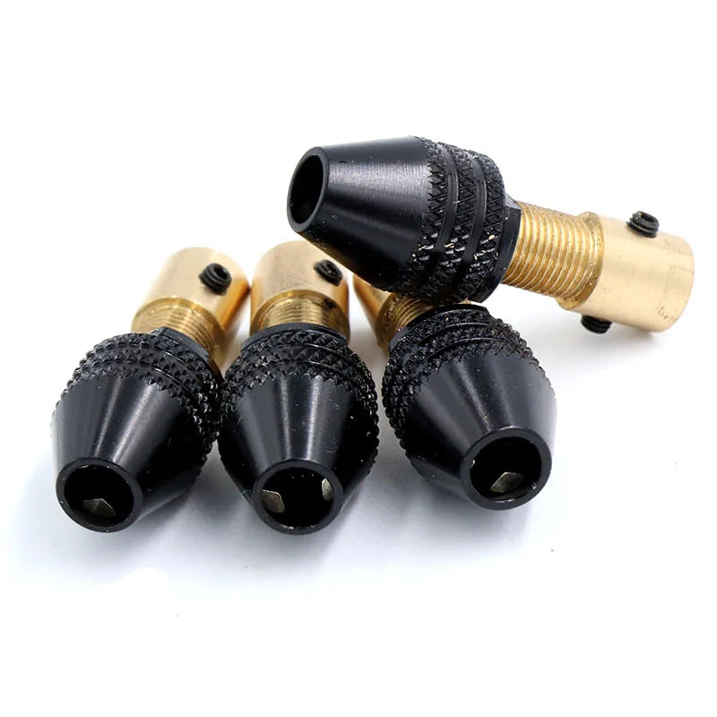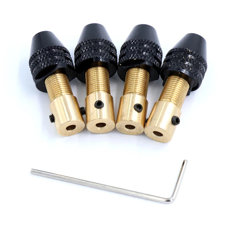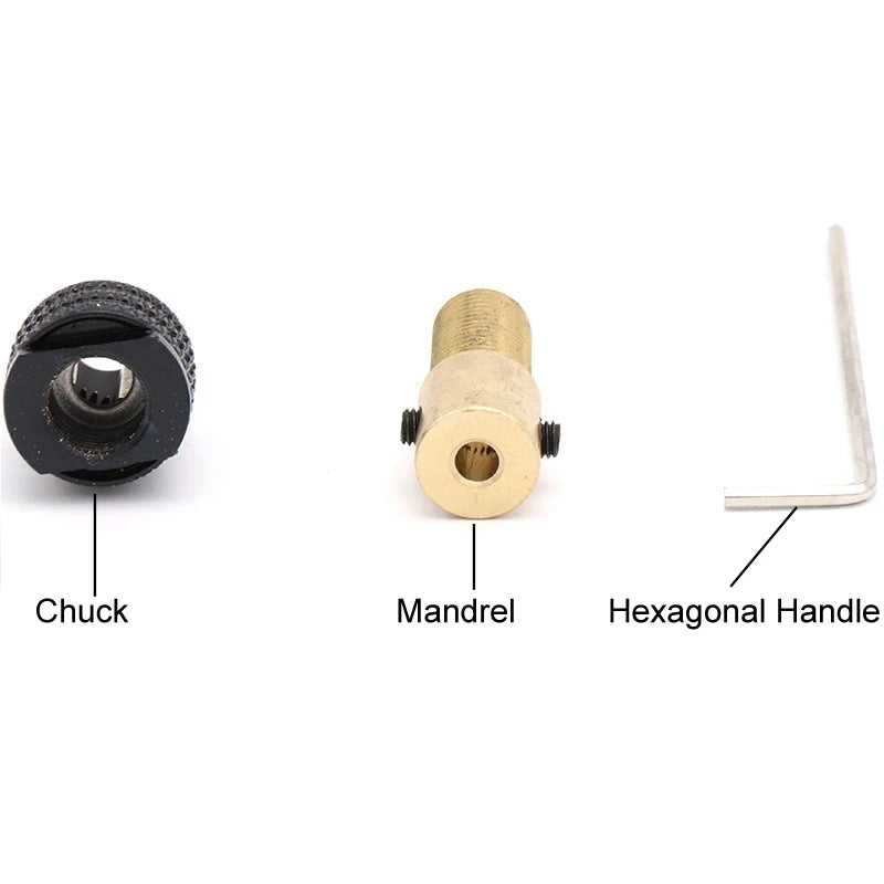 This drill chuck kit is designed for use with electric drills and jewelry tools. It includes a mandrel with a hexagonal handle for easy installation and removal.