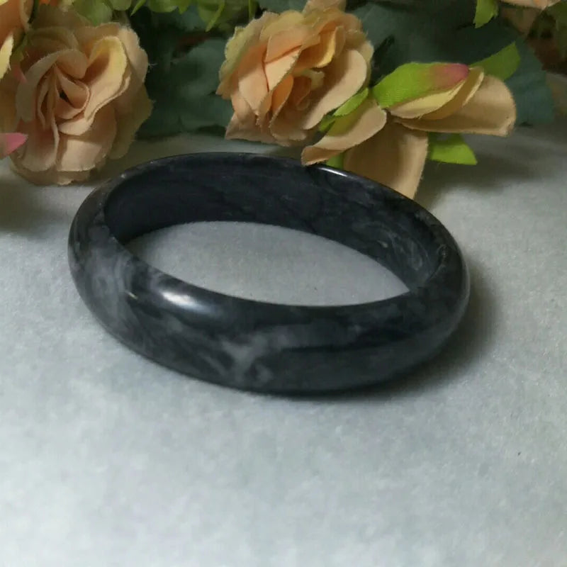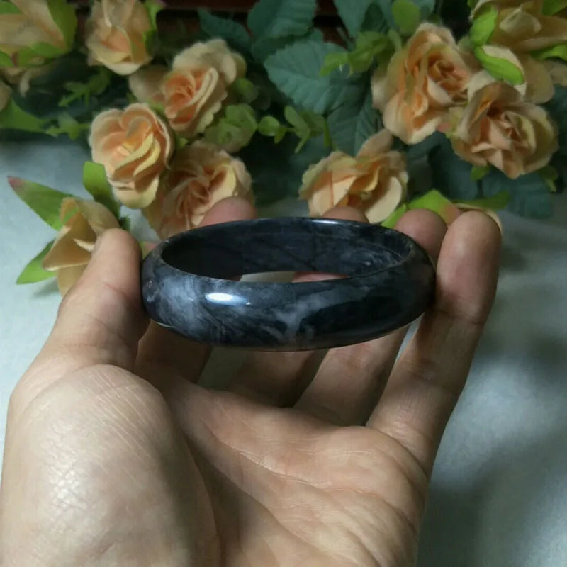 This exquisite jade bangle is believed to bring luck, exorcise evil spirits, and serve as an auspicious amulet. Crafted from fine jade, this jewelry piece is a symbol of protection and positive energy.