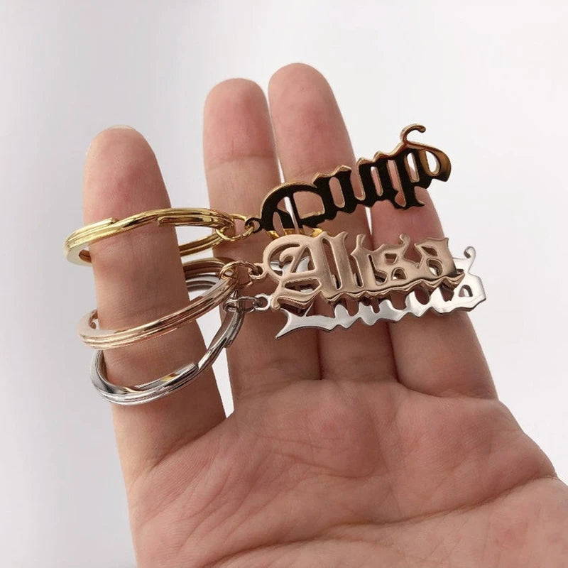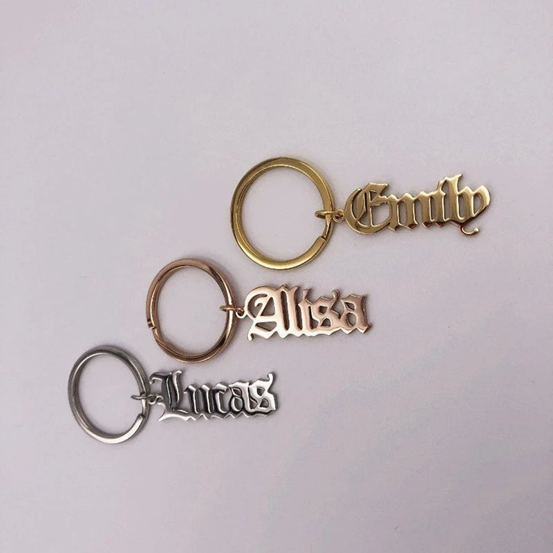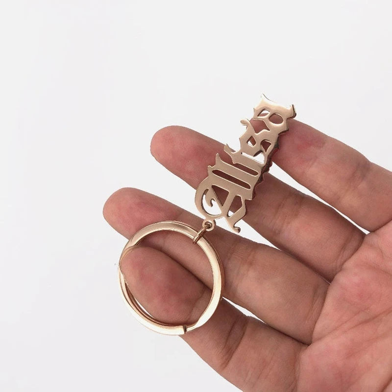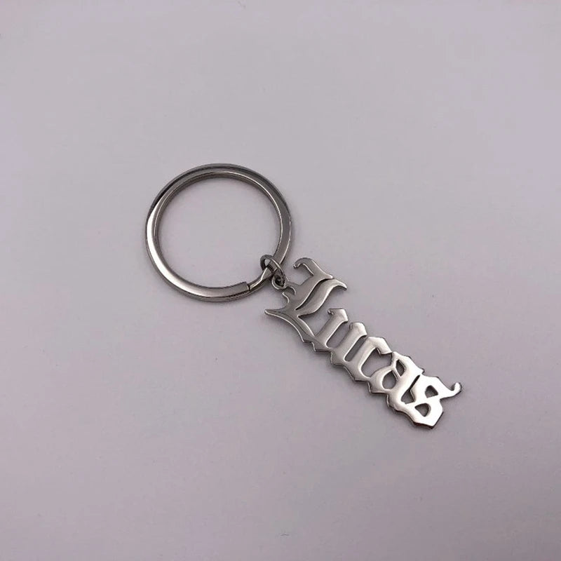 Add a touch of personalization to your keyring with this Old English keychain. Made of durable stainless steel, this nameplate keyring is perfect for daily wear or as a unique accessory.