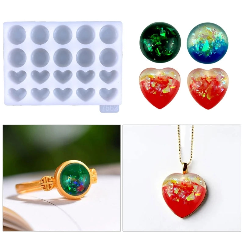 Create unique keychains with these round and heart-shaped silicone molds. Perfect for DIY projects and crafting.