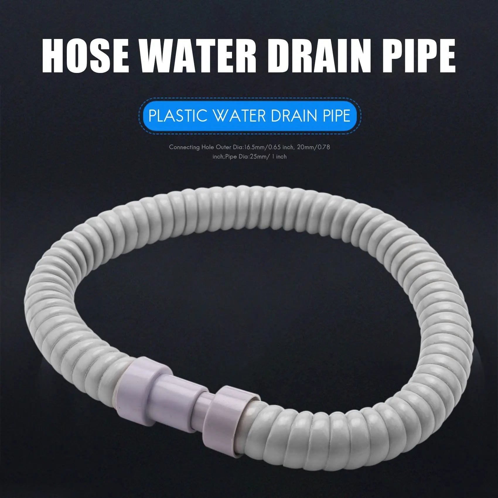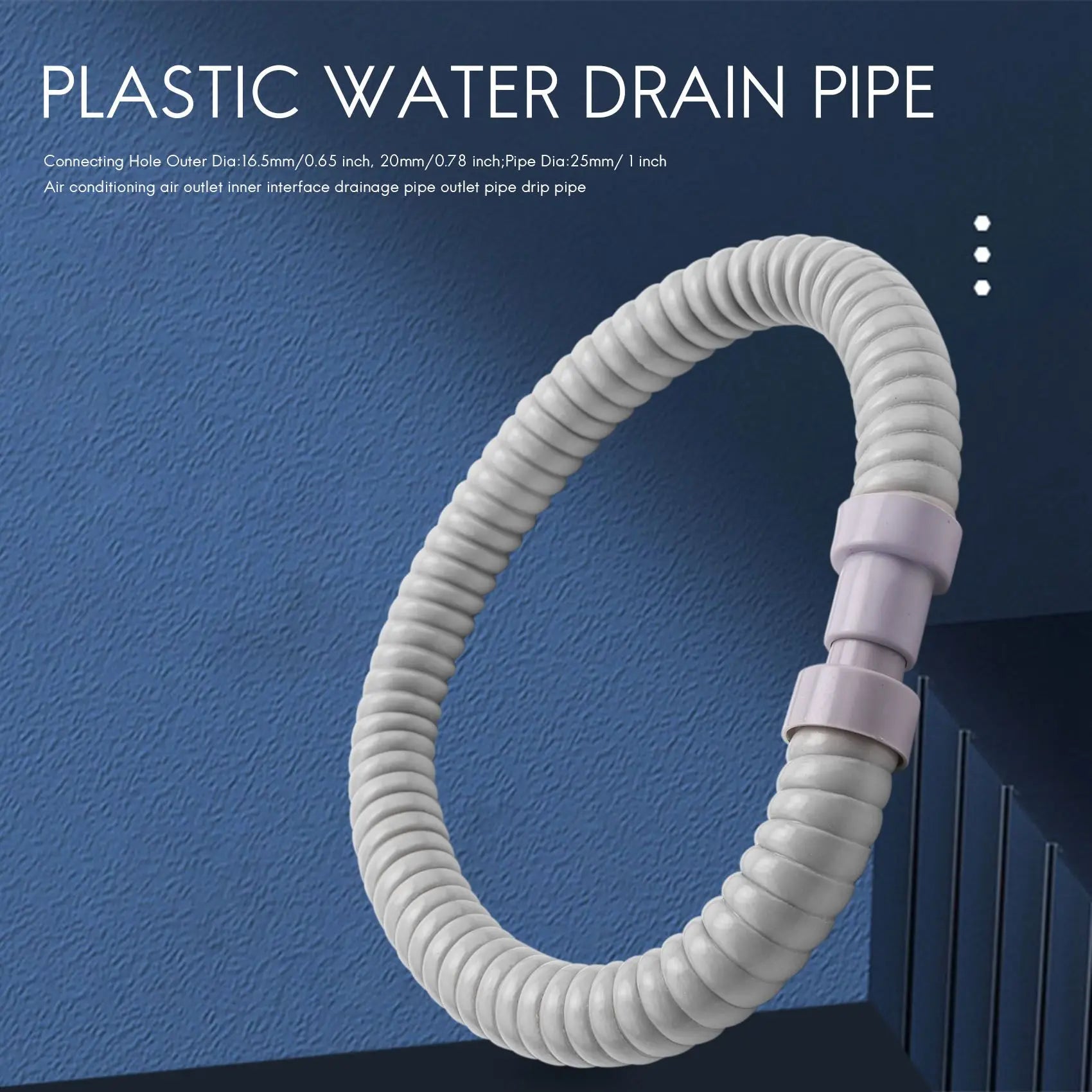 This plastic drain pipe hose is designed for air conditioners. It is long and gray in color, providing efficient water drainage.