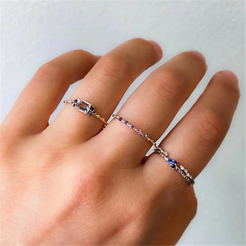 Purple Zircon 925 Silver Ring for Women Birthday Party Wear Size 6 7 8
