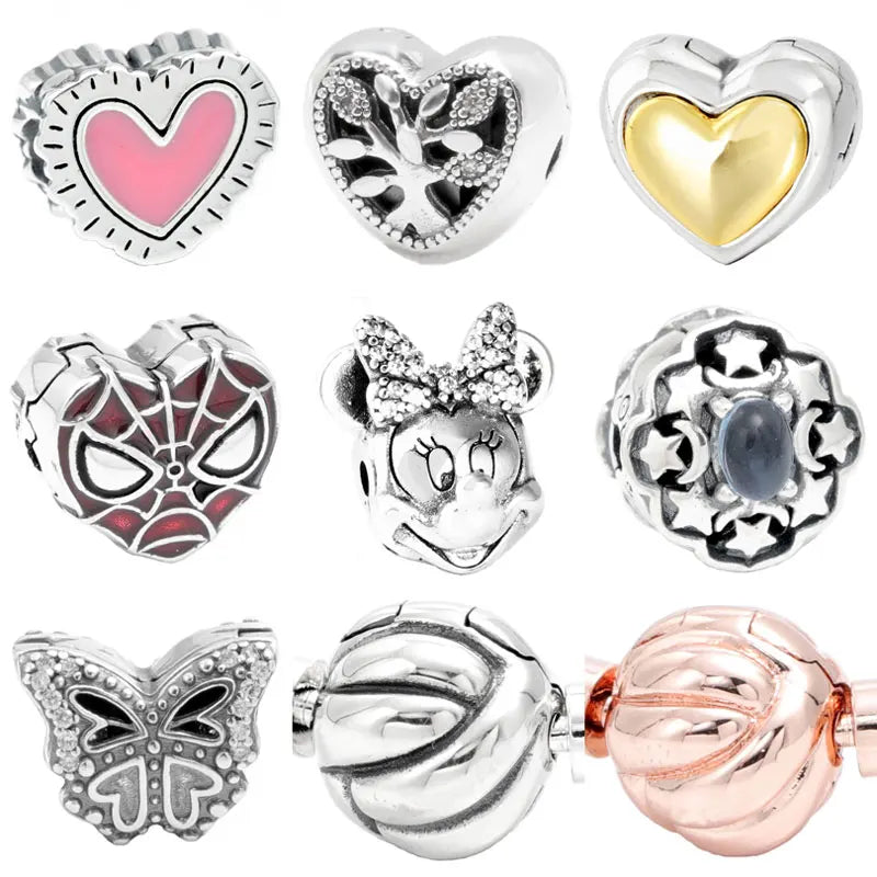 Elegant 925 sterling silver bracelet with spider, moon, star, and heart charms. Perfect for DIY jewelry making.