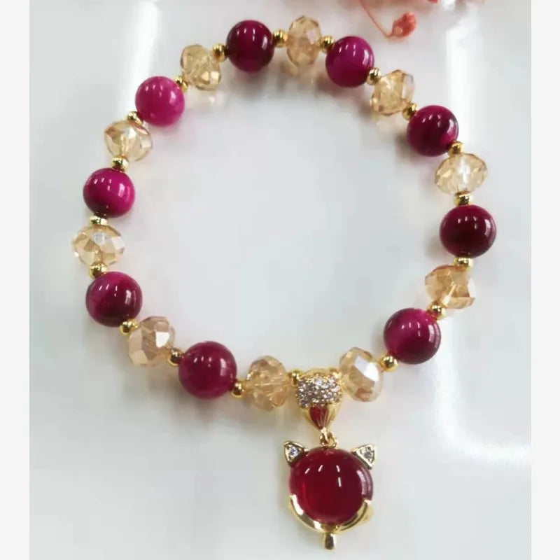 This single ring bracelet features natural Red Tiger Eye beads, a stylish addition to any outfit.