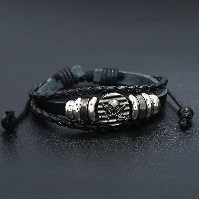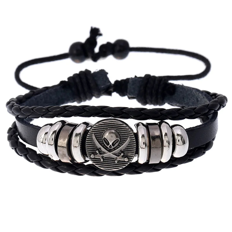 Retro Beaded Skull Leather Bracelet Adjustable Unisex Jewelry