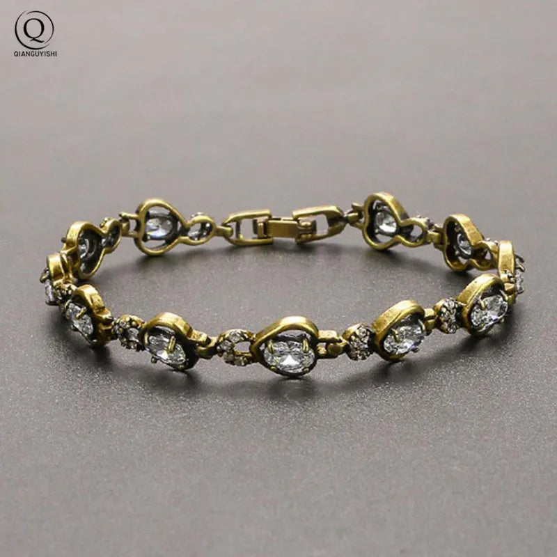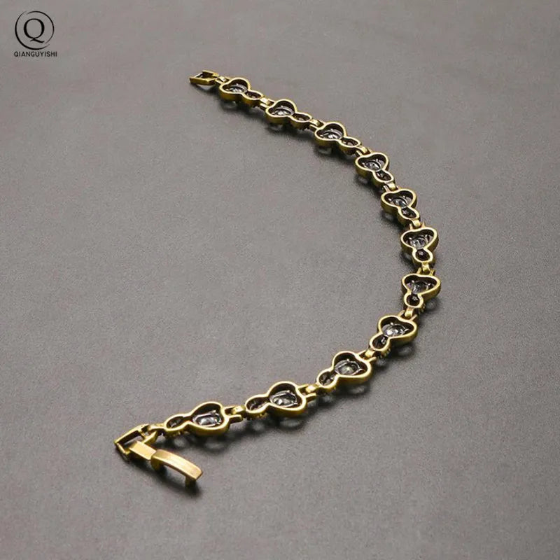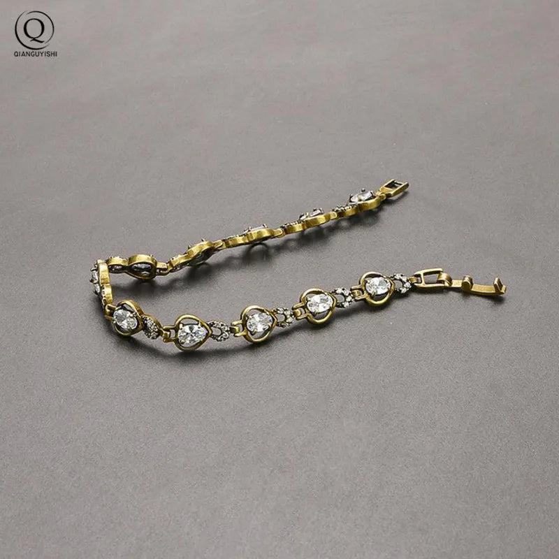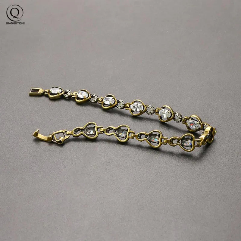 This classic retro copper crystal heart bracelet is a perfect gift for women. Made of brass metal, it exudes love and elegance. The bracelet features a beautiful heart-shaped crystal that adds a touch of charm to any outfit.