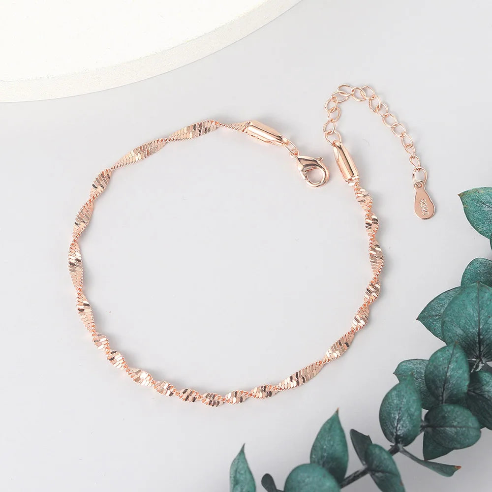 Elegant twist bracelet designed for women. This rose bangle hand chain is a trendy piece of Kpop jewellery.