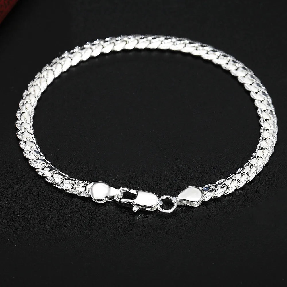 This stunning S925 sterling silver bracelet is perfect for both men and women. It features a 5mm width and 8-inch length, making it a stylish accessory for any occasion. Whether you're attending a party or looking for a special gift, this bracelet is sure to impress.