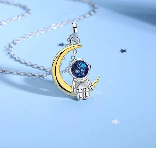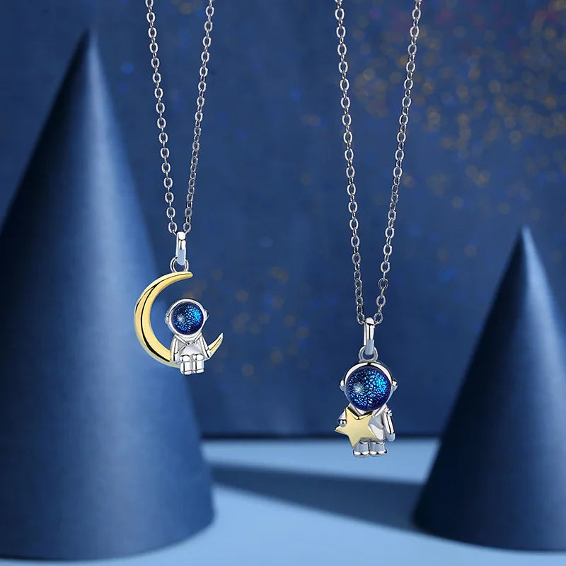 This beautiful couple necklace features an astronaut with a star and moon design, perfect for expressing love on anniversaries. Made of high-quality S925 silver.