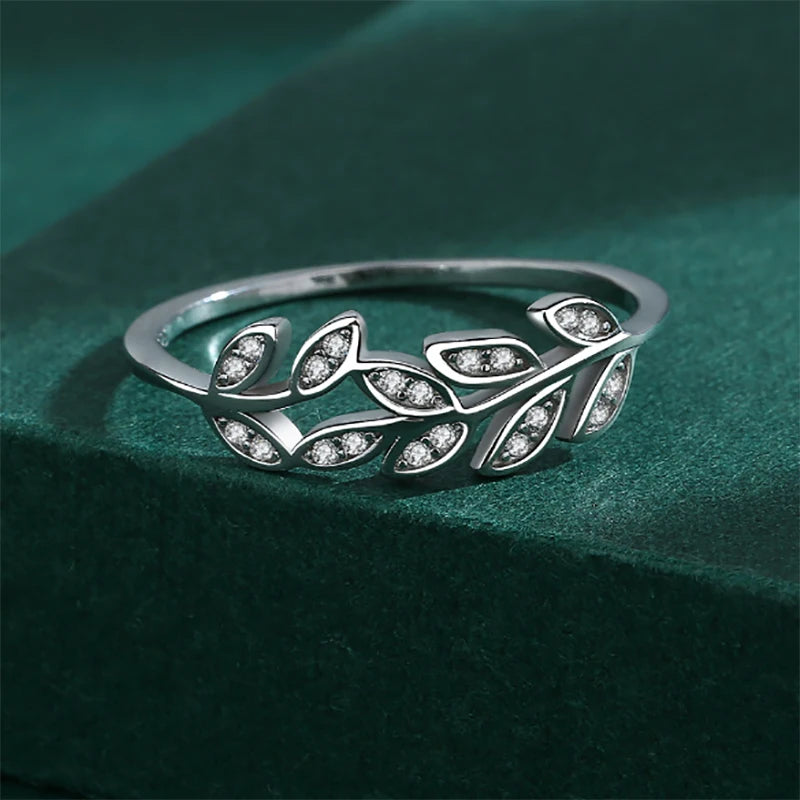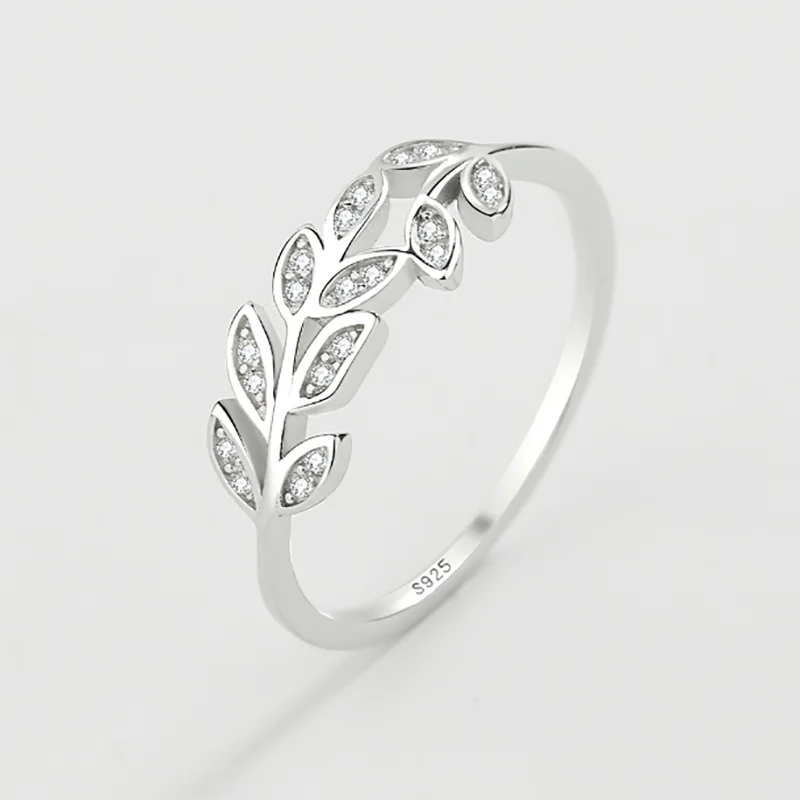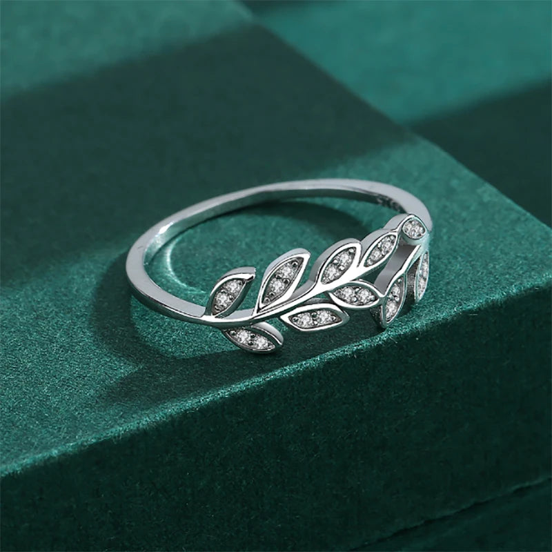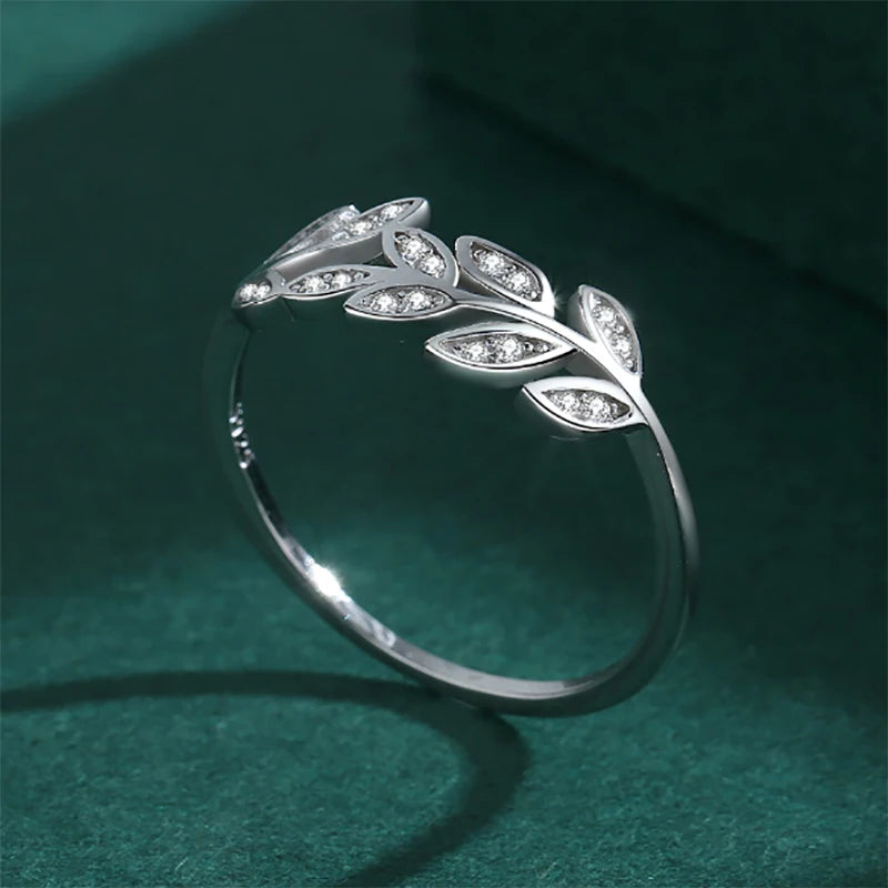 This stunning S925 silver ring features a diamond crystal leaf design, perfect for weddings, engagements, or everyday wear. The ring makes a thoughtful gift for any special occasion.