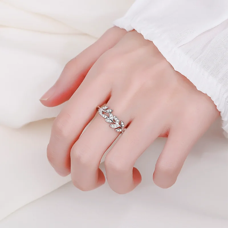S925 Silver Diamond Crystal Leaves Rings Women Bride Jewelry