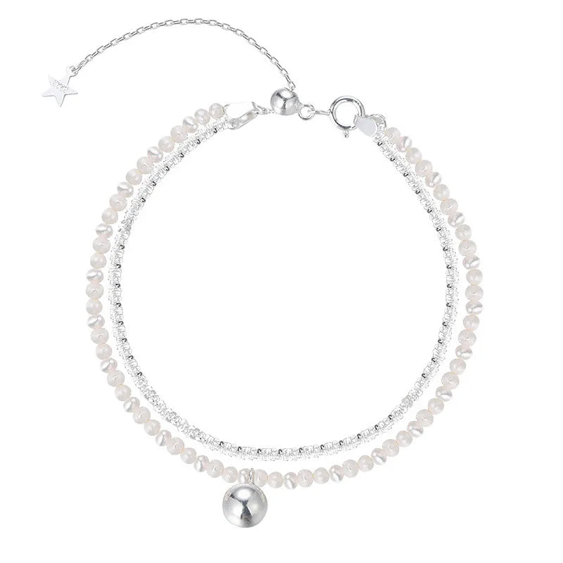 Elegant S925 sterling silver double layer bracelet featuring gypsophila design and pearls. Perfect for weddings and parties.