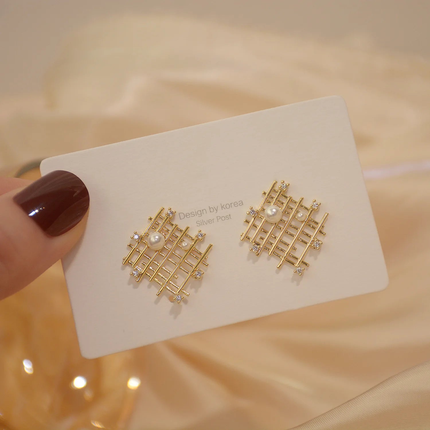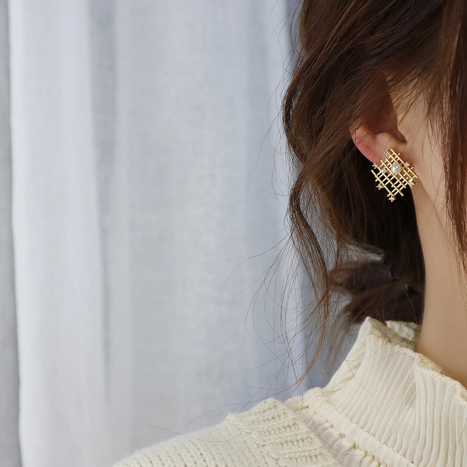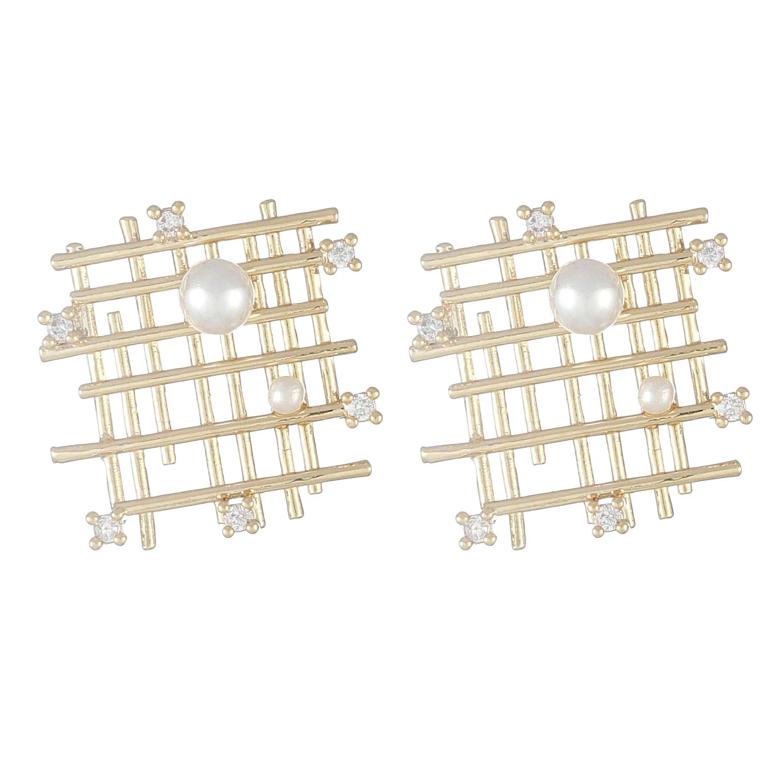 Add a touch of elegance to your look with these exquisite geometric hollow earrings. The micro-inlaid pearls and zircon create a beautiful contrast that enhances your style.