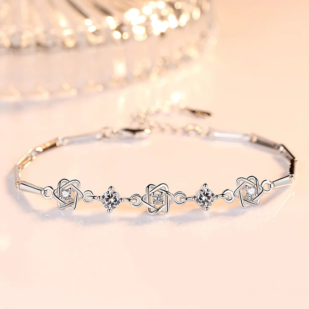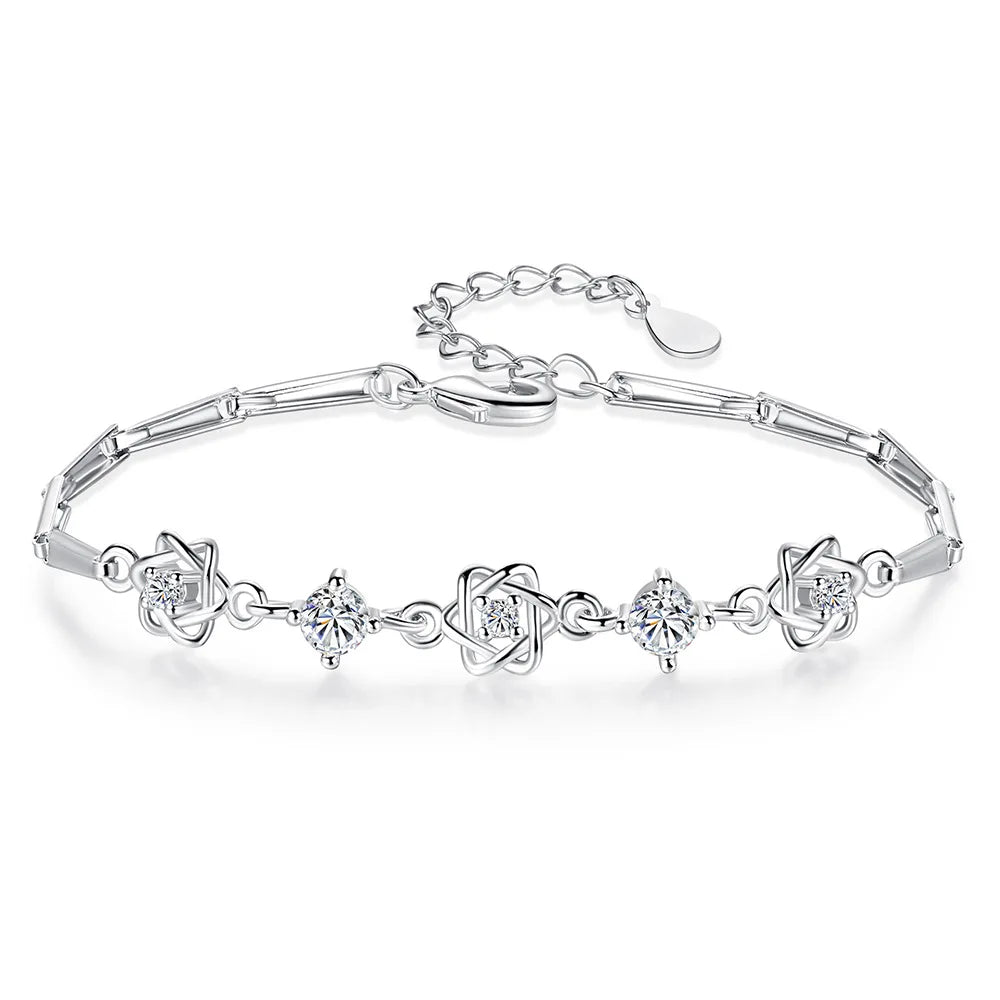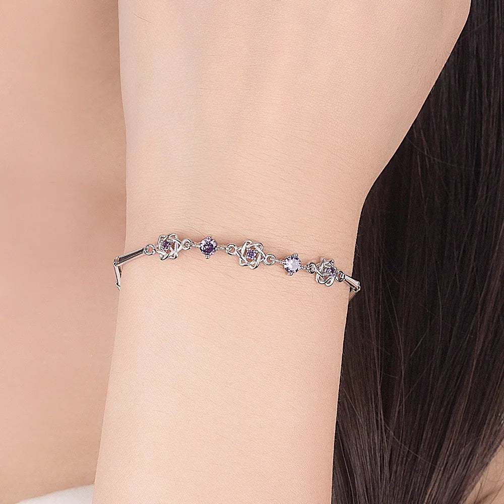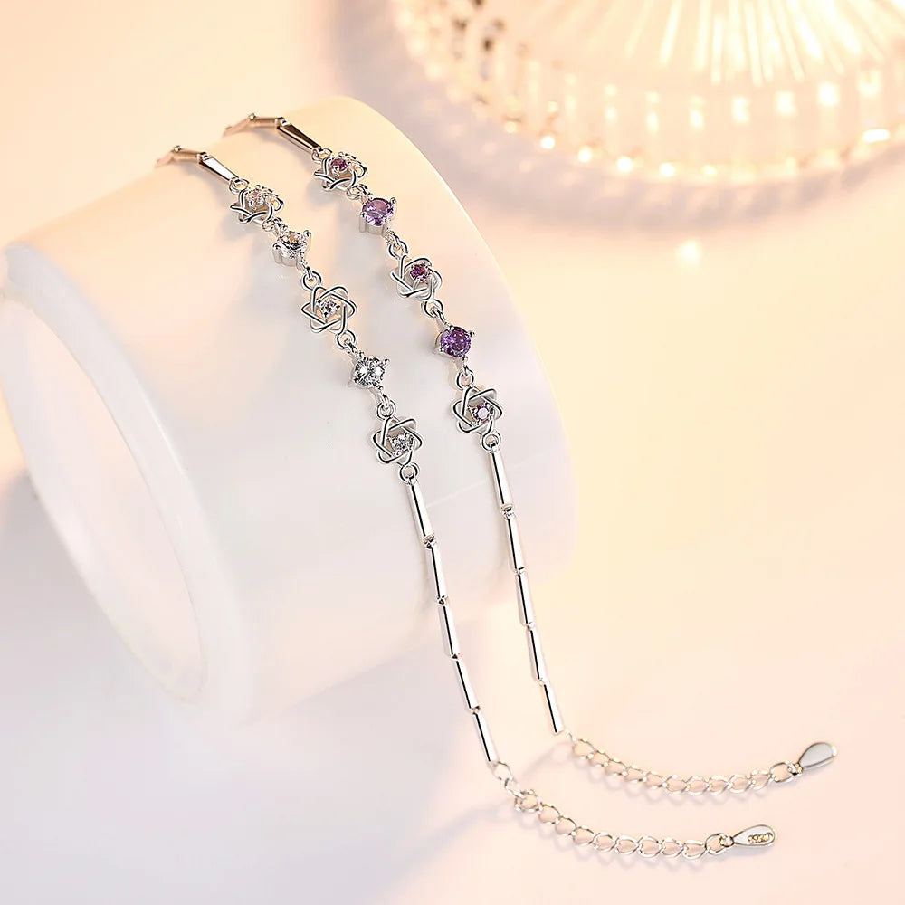 This stunning S925 silver bracelet features a beautiful design with purple and clear stones in the shape of the Star of David. Perfect for weddings, birthdays, or as a thoughtful gift.