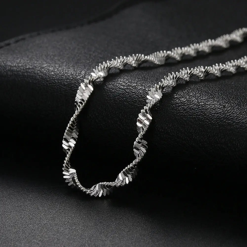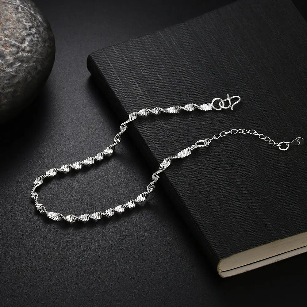 Elegant water wave chain bracelet made of 925 sterling silver. Perfect for weddings, parties, and as a birthday gift for women.