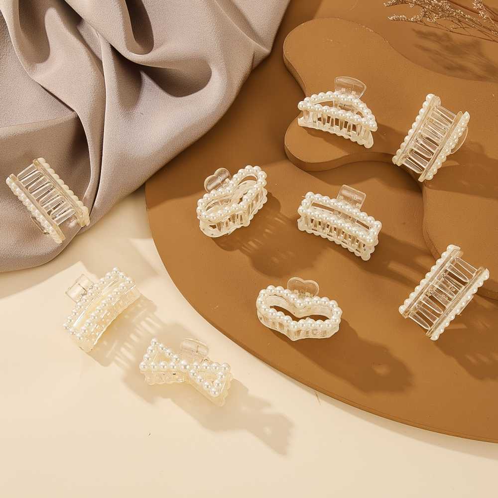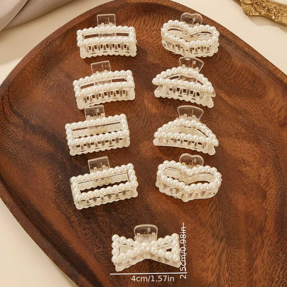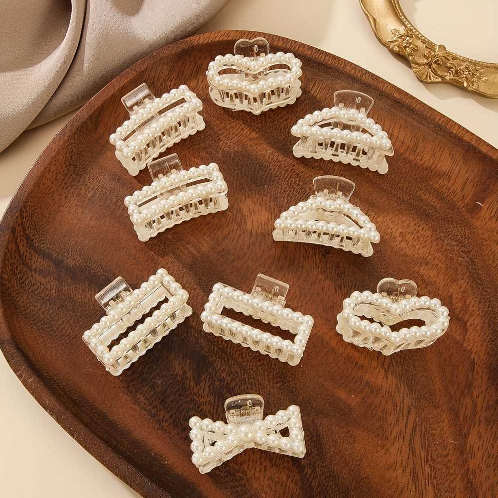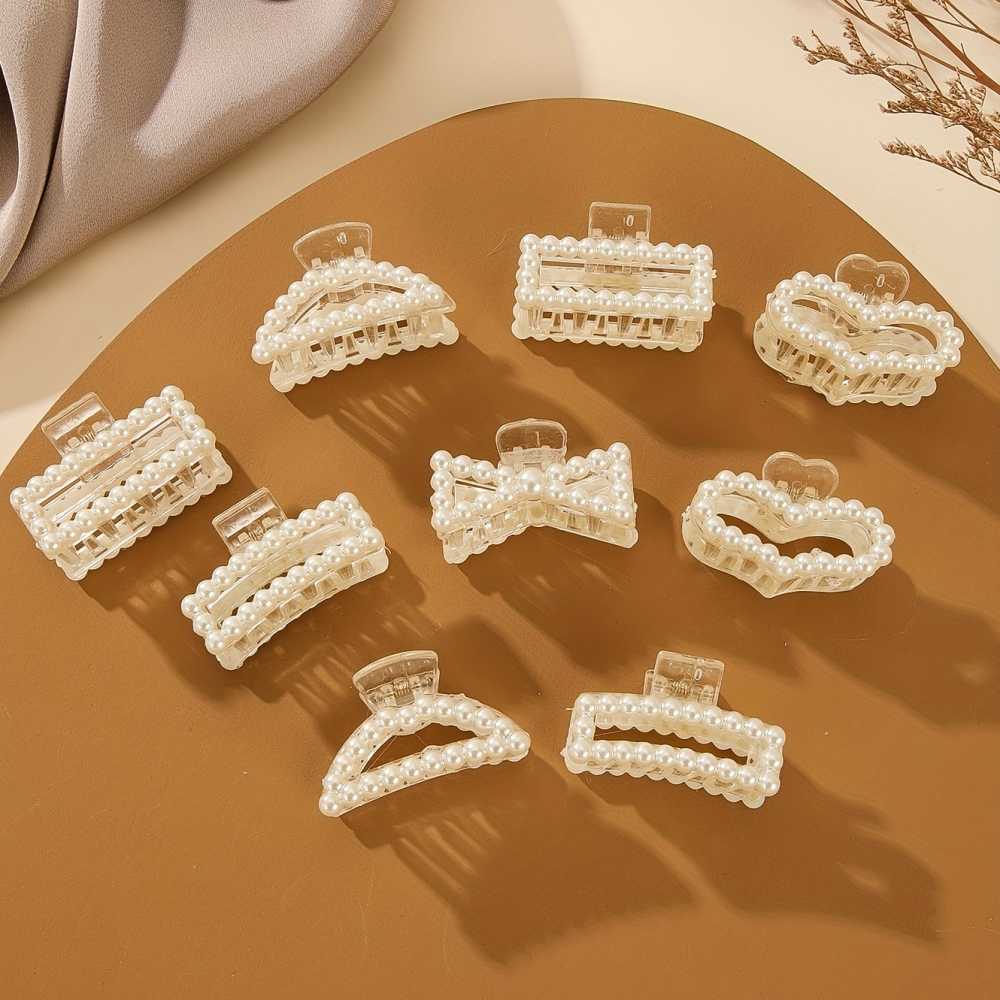 Set of 9 elegant faux pearl hair claws with non slip grip, Stylish Hair Accessory for Women
