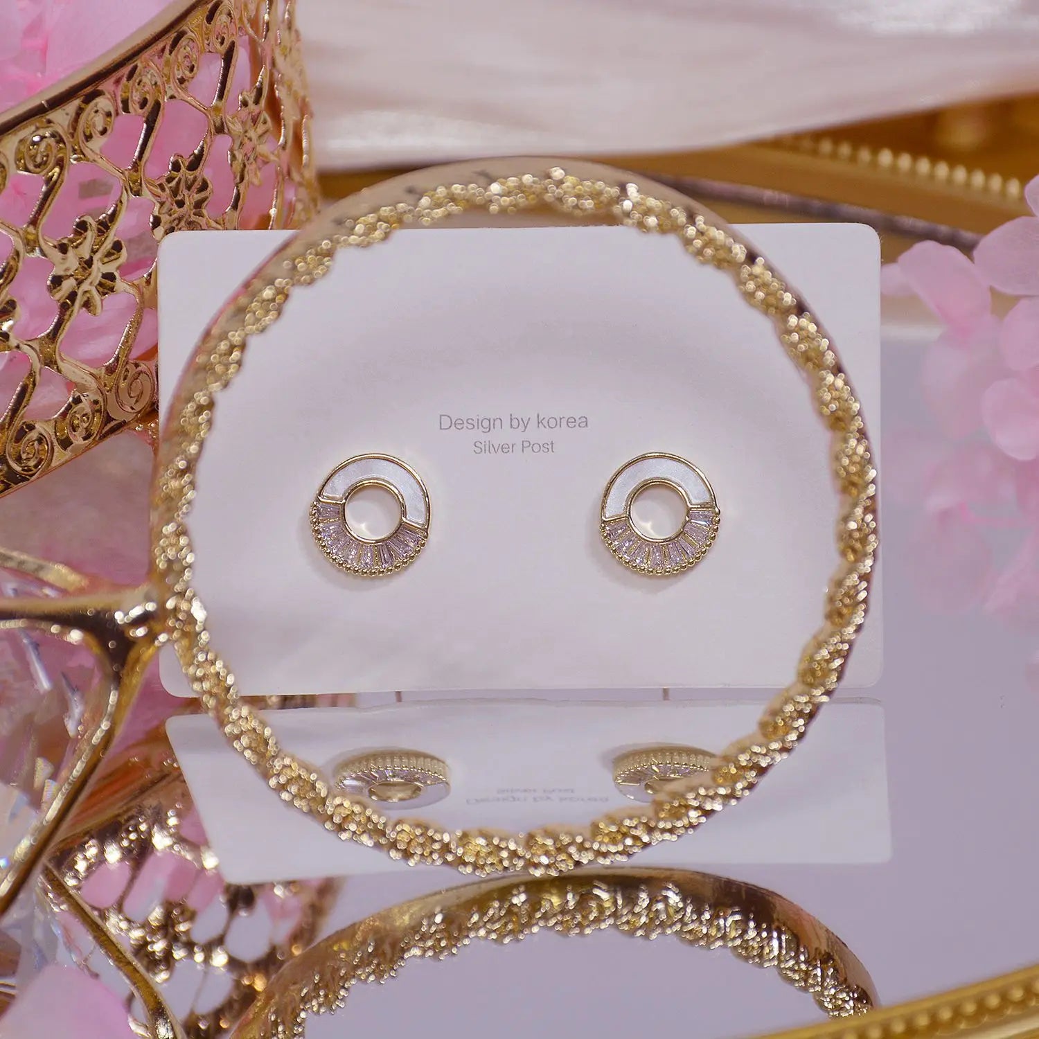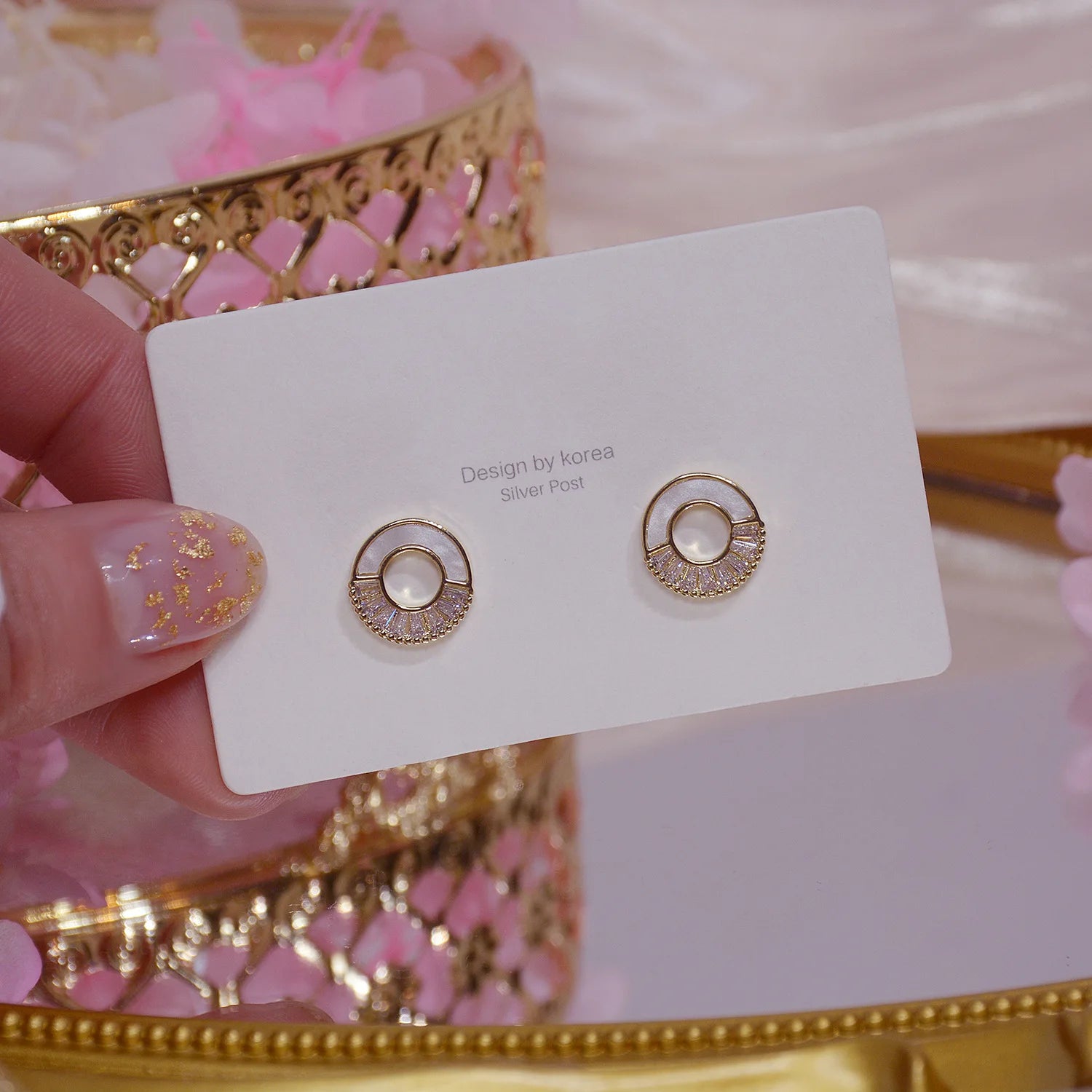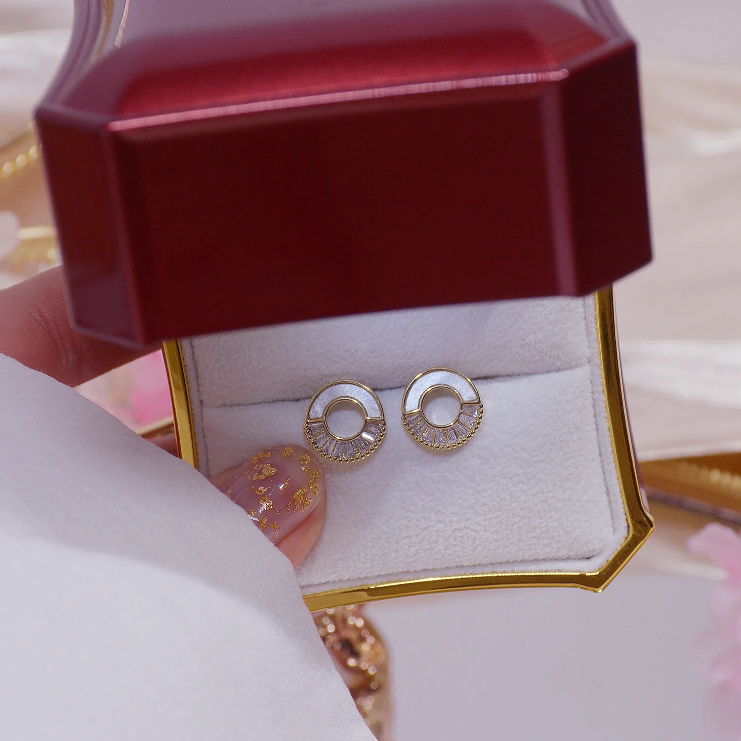 - S925 silver needle earrings with micro inlaid zircon and shell