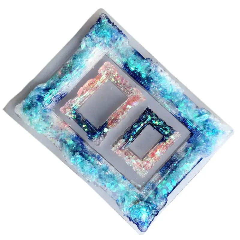 Create beautiful picture frame designs with this silicone mold. Perfect for resin, fondant, and other crafting projects.
