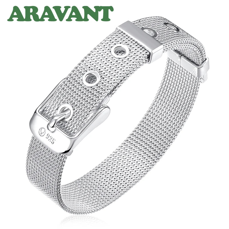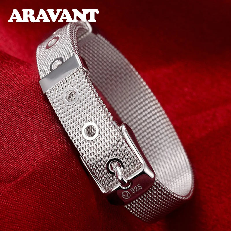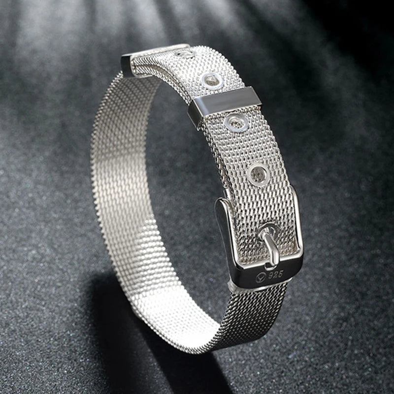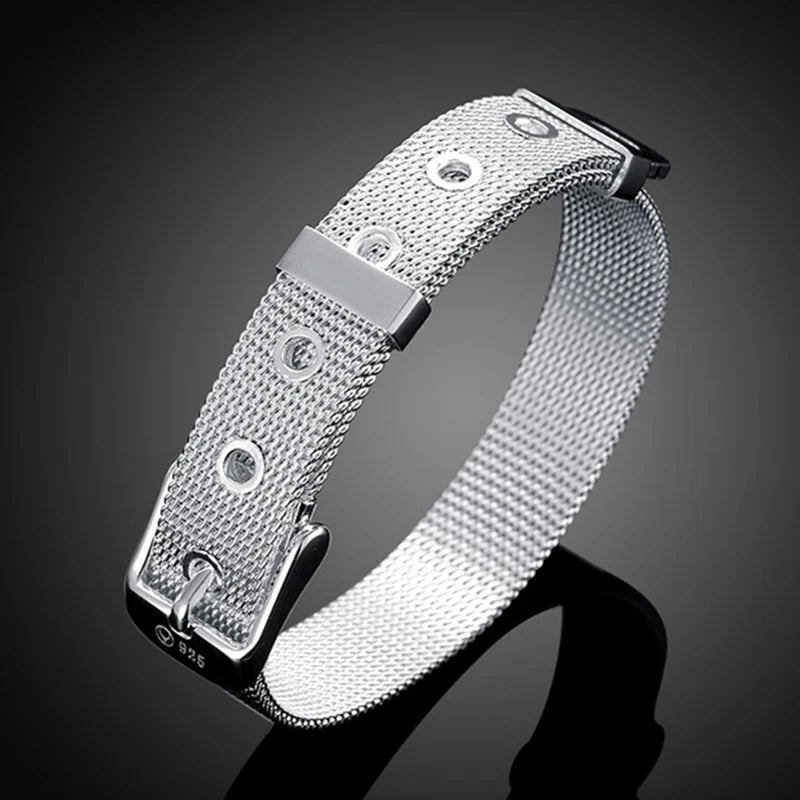 This bracelet is made of high-quality 925 sterling silver with a mesh belt design suitable for both men and women. Add a touch of elegance to any outfit with this stylish silver jewelry piece.