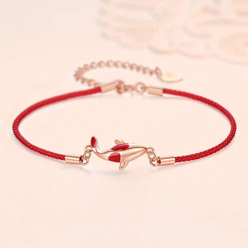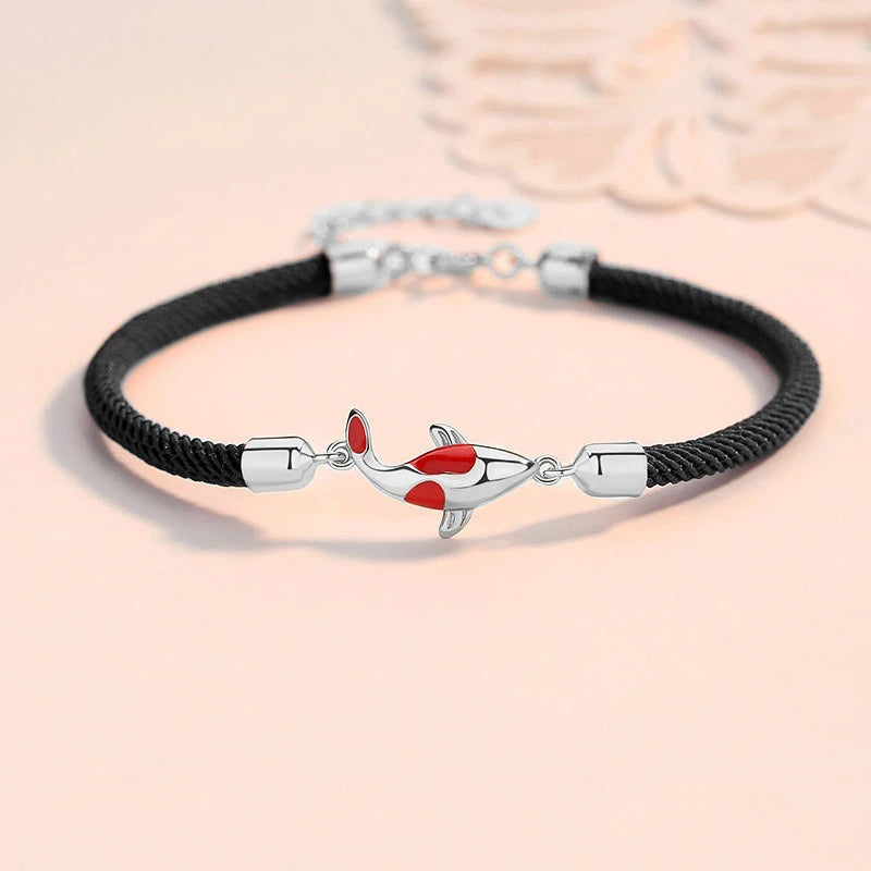 This elegant woven bracelet features a silver lucky koi pendant, making it a perfect gift for birthdays or anniversaries. The intricate design adds a touch of creativity to any outfit.