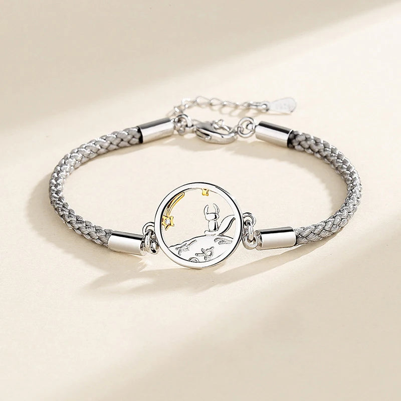 This elegant bracelet features a silver prince little fox pendant on a braided design, perfect for adding a touch of charm to your outfit.