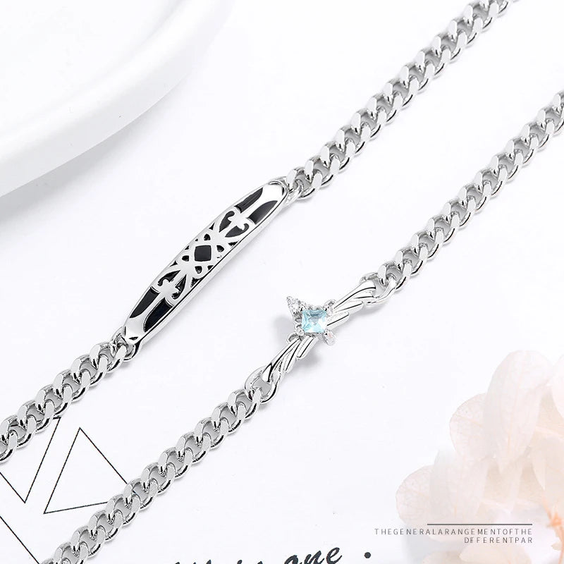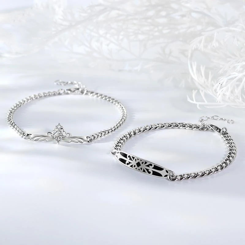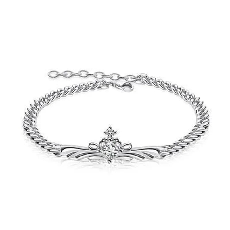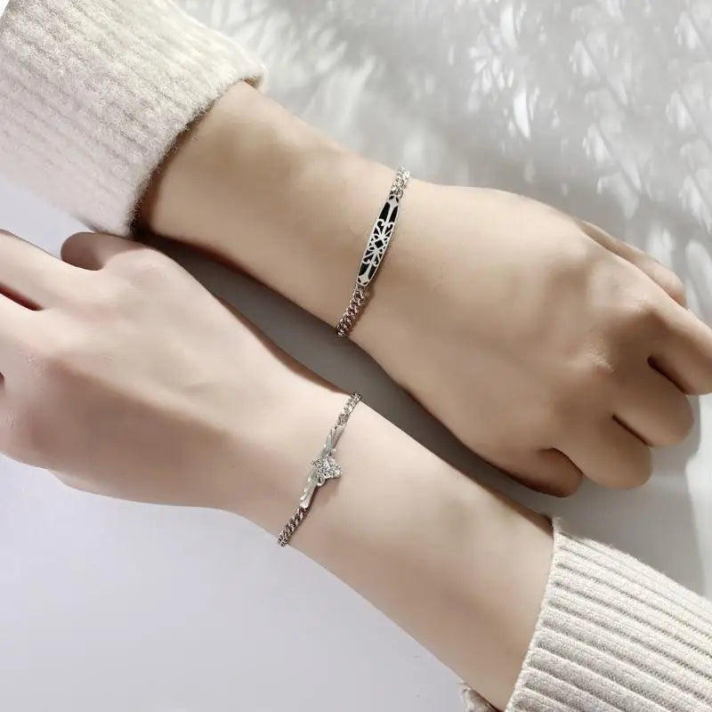 This adorable bracelet set features a silver princess knight crown shield design, perfect for long distance love jewelry.