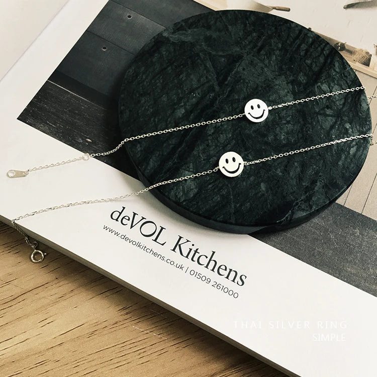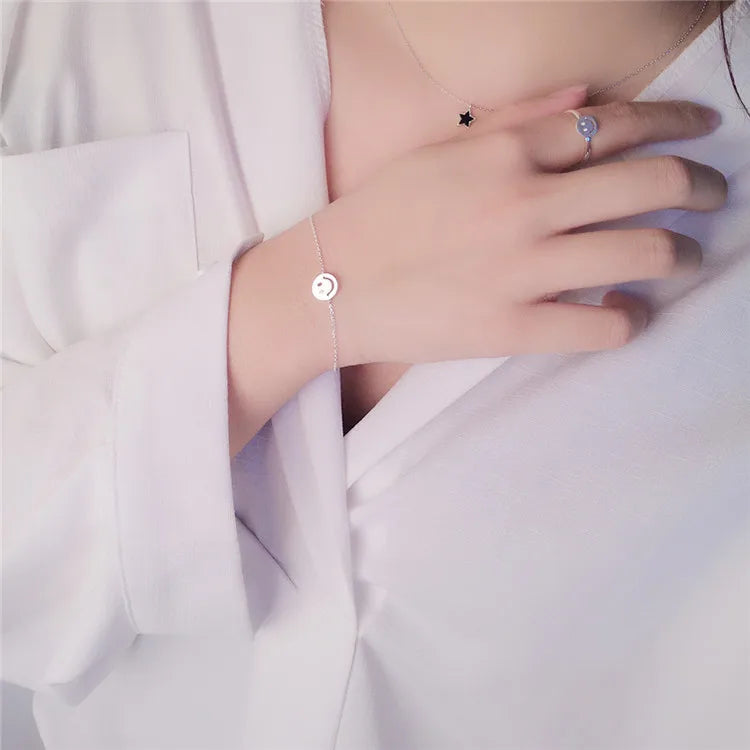 Smiling Face Charm Bracelet, 925 Sterling Silver Jewelry