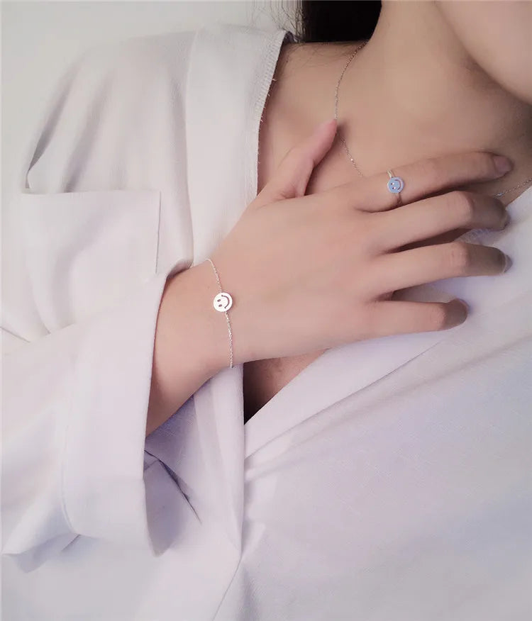 This charming bracelet features a female smiling face design, crafted from high-quality 925 sterling silver. Perfect for adding a touch of personality to your jewelry collection.