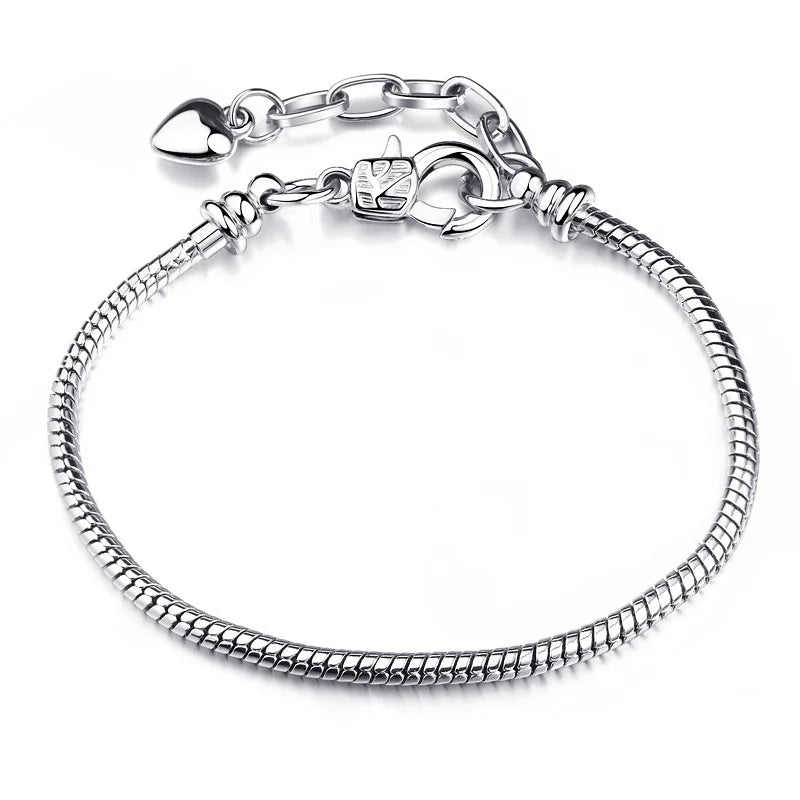 Create your own stunning charm bracelet with this fine snake chain bracelet that fits European charm beads. Ideal for women who love personalized jewelry.