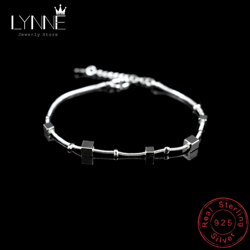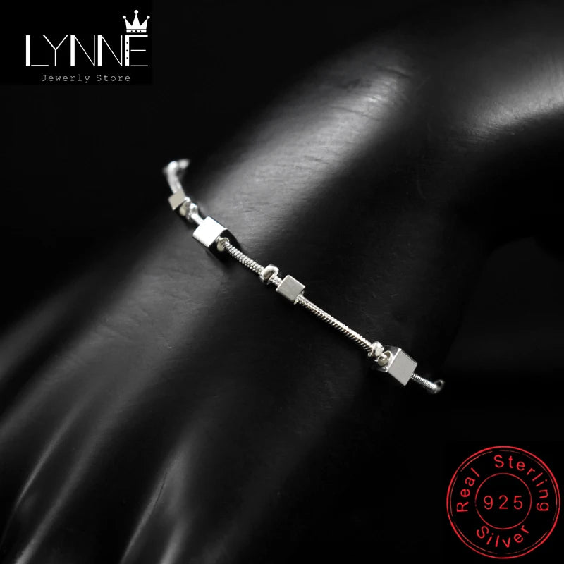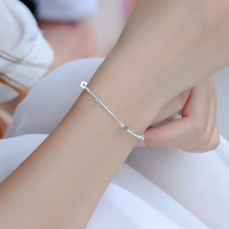 Elegant square pendant adjustable bracelet made of 925 sterling silver. Perfect hand chain for women and girls. Great jewelry gift idea.