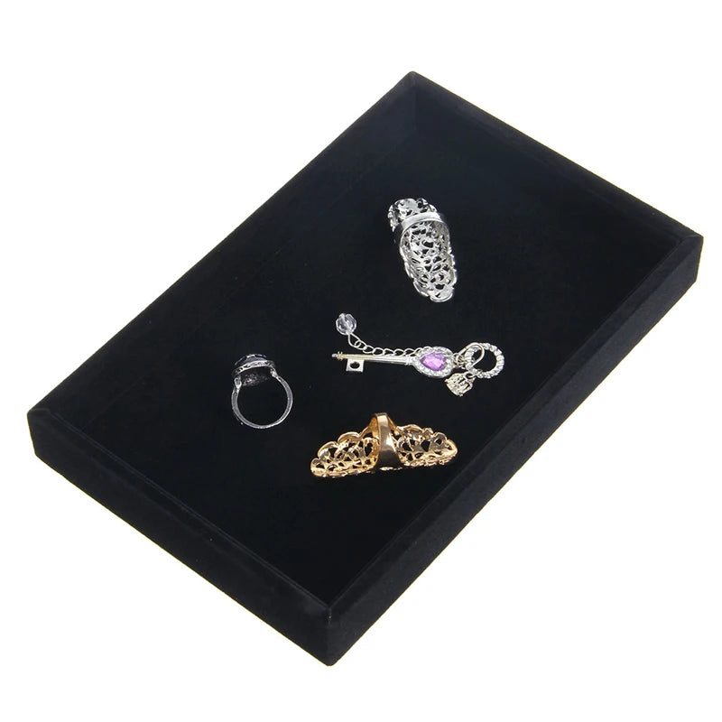 Organize your jewelry collection with this stackable tray set. The velvet inserts provide a soft surface to protect your jewelry. Perfect for keeping your accessories in one place and easy to access.