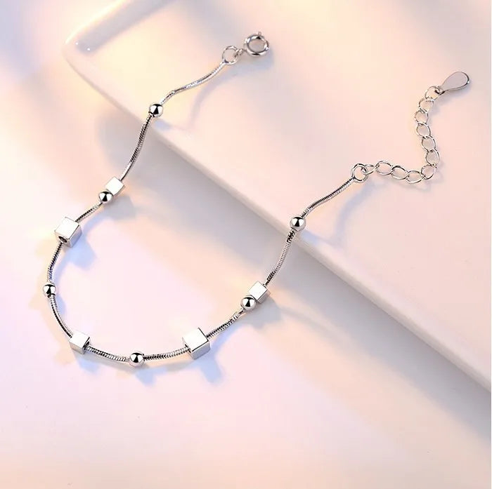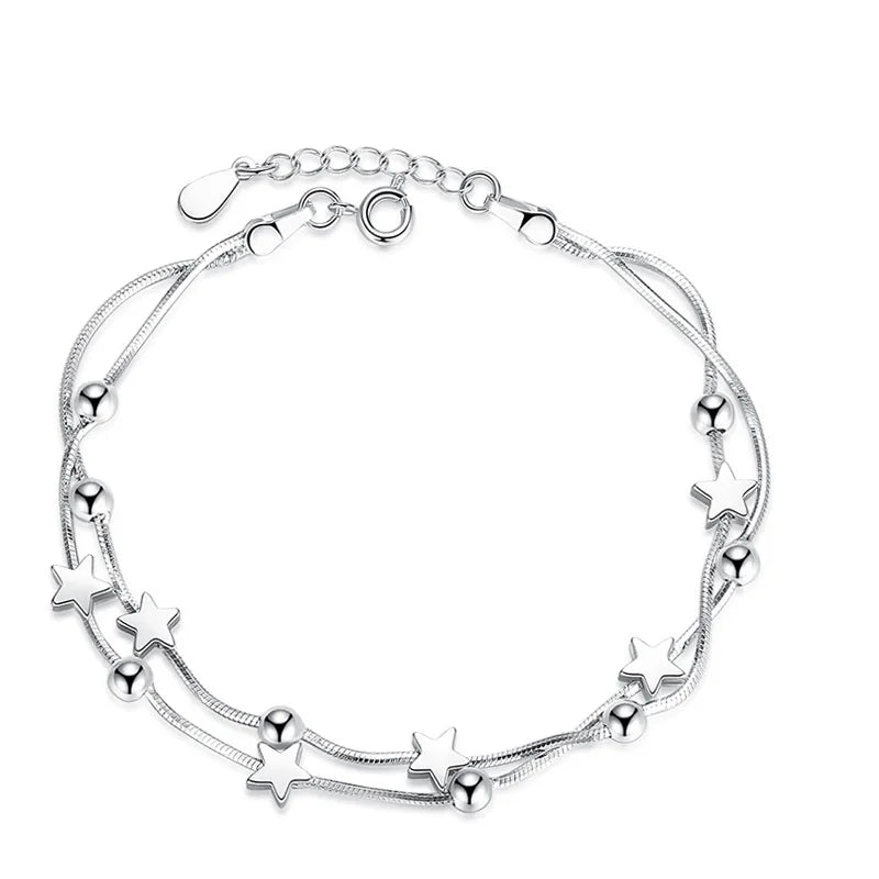 This lovely bracelet features star cube beads charms crafted in 925 silver. It has a double-deck link chain design and is perfect for women who love unique jewelry pieces.
