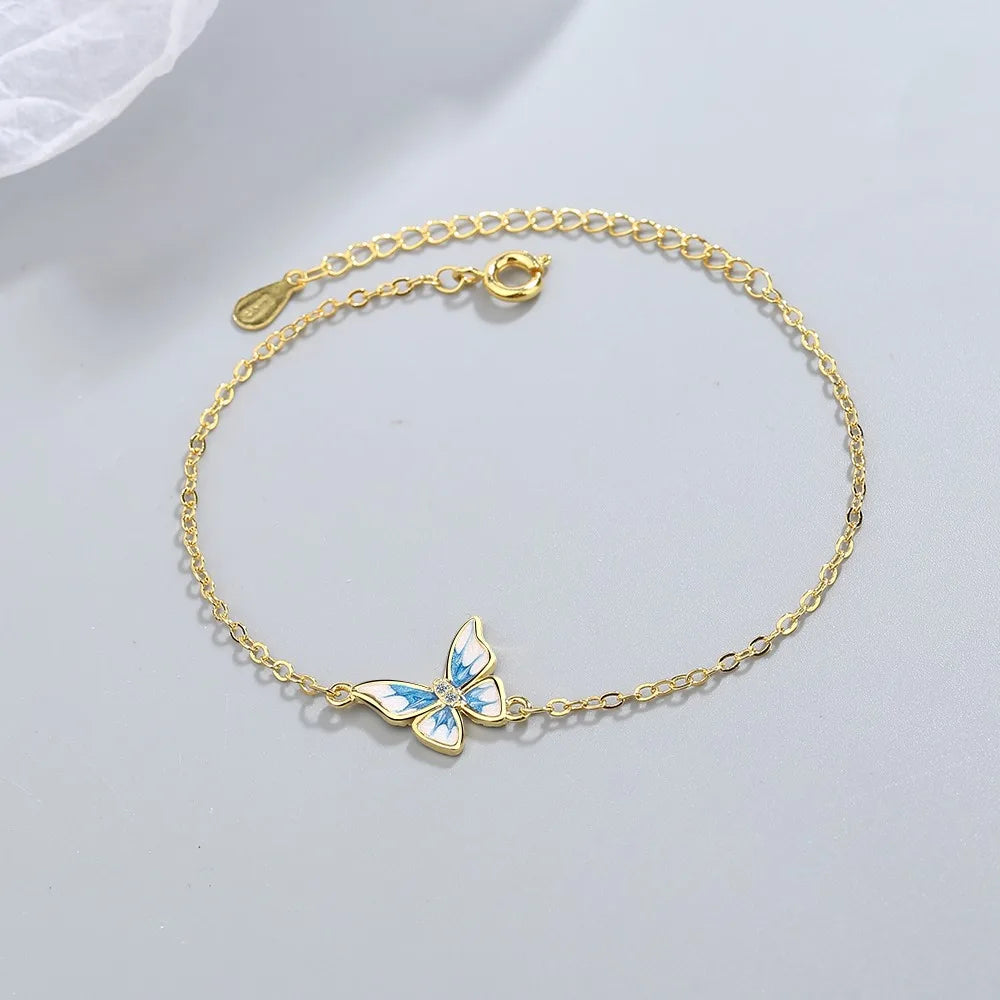 Sterling Silver Butterfly Zircon Bracelet Romantic Fine Jewelry