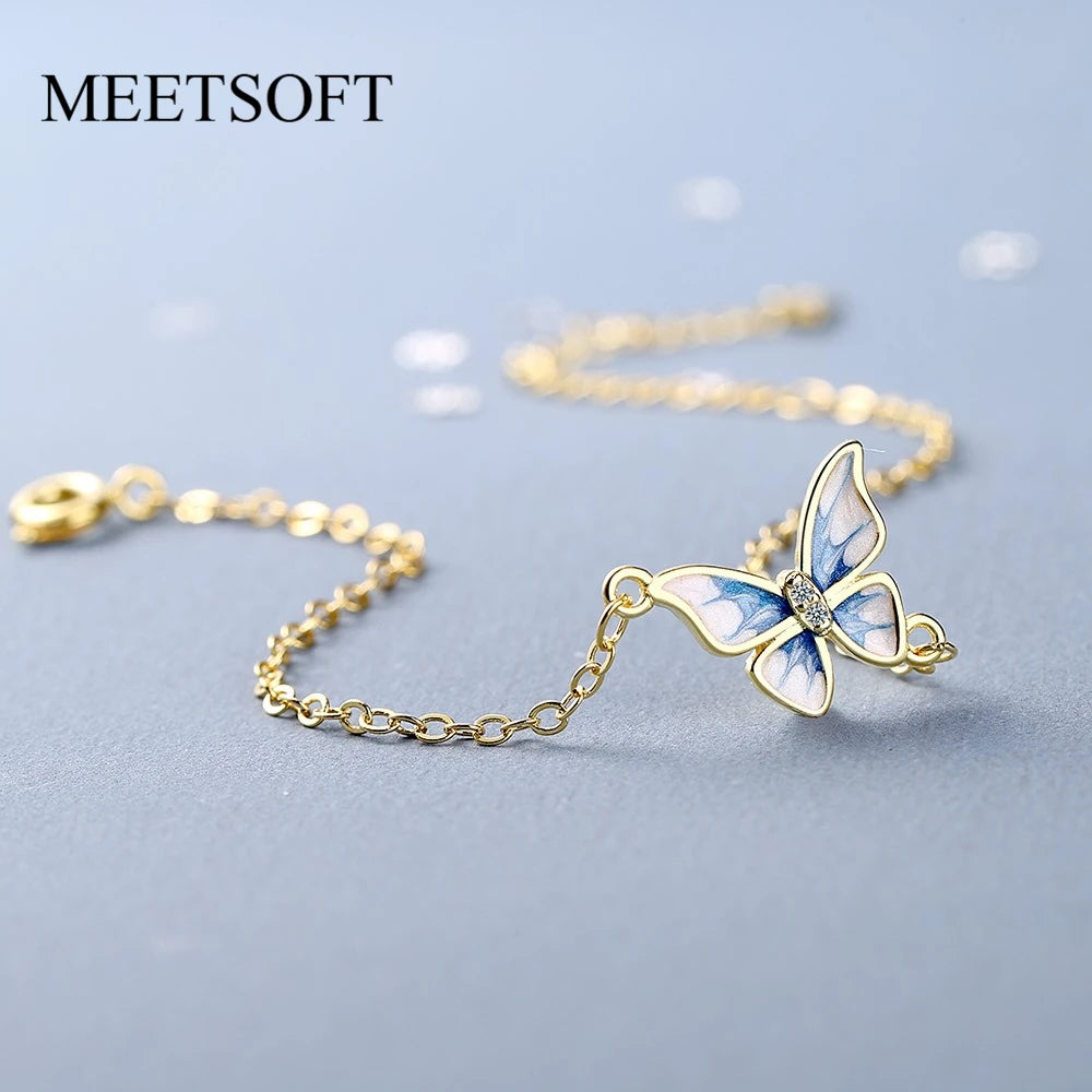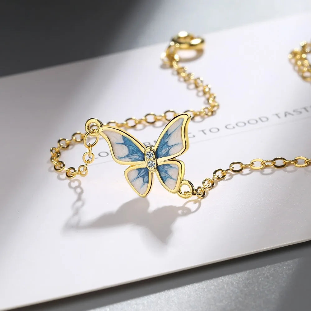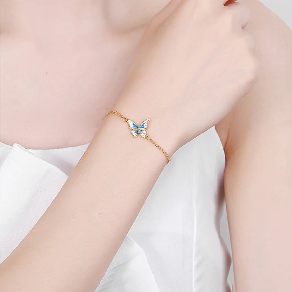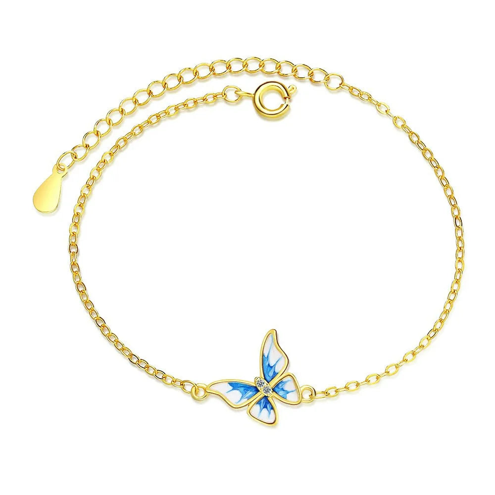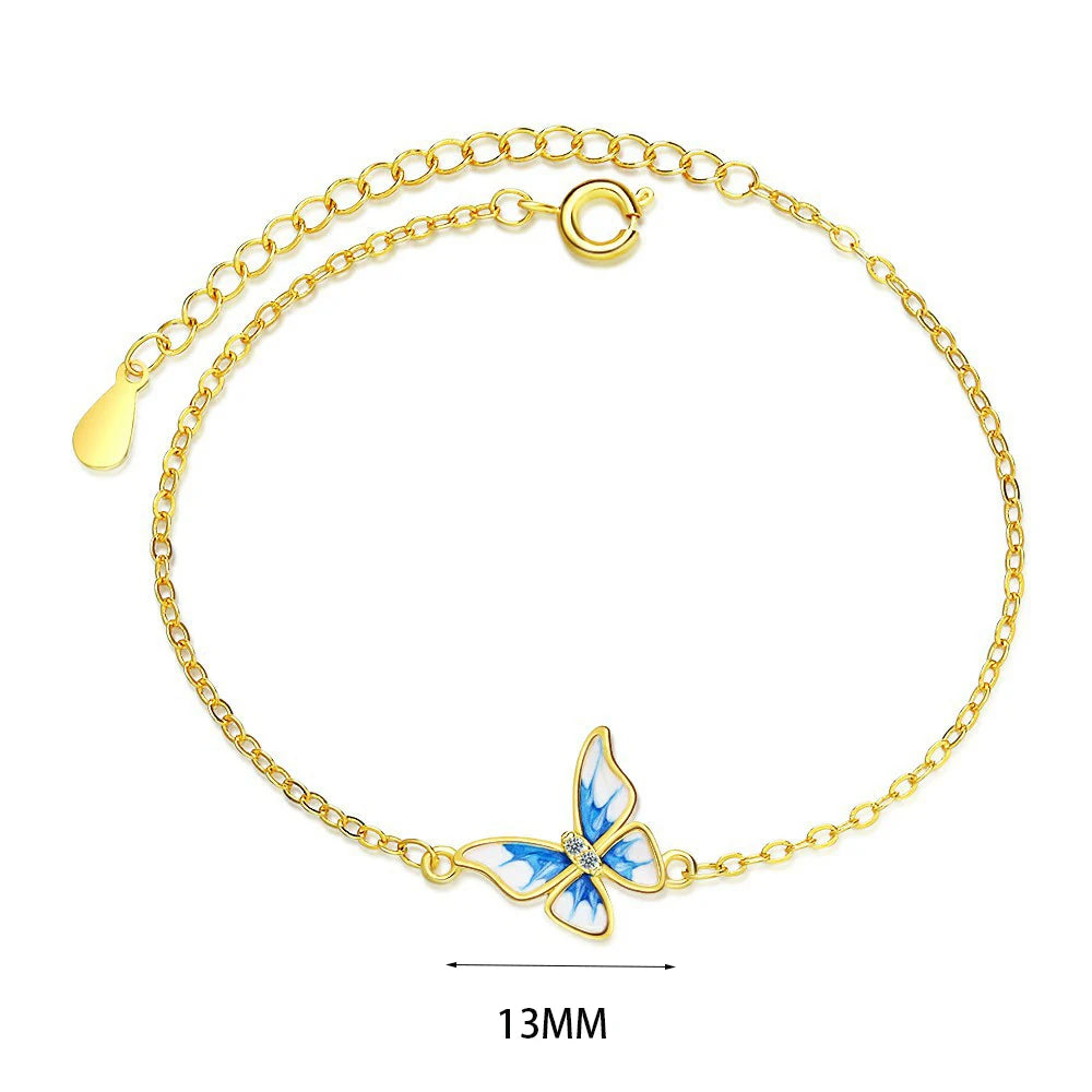 This exquisite bracelet features a beautiful butterfly design with colorful enamel and sparkling zircon stones. Made of 925 sterling silver with a 14K gold plating, this bracelet is a perfect accessory for any occasion.