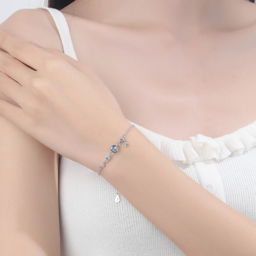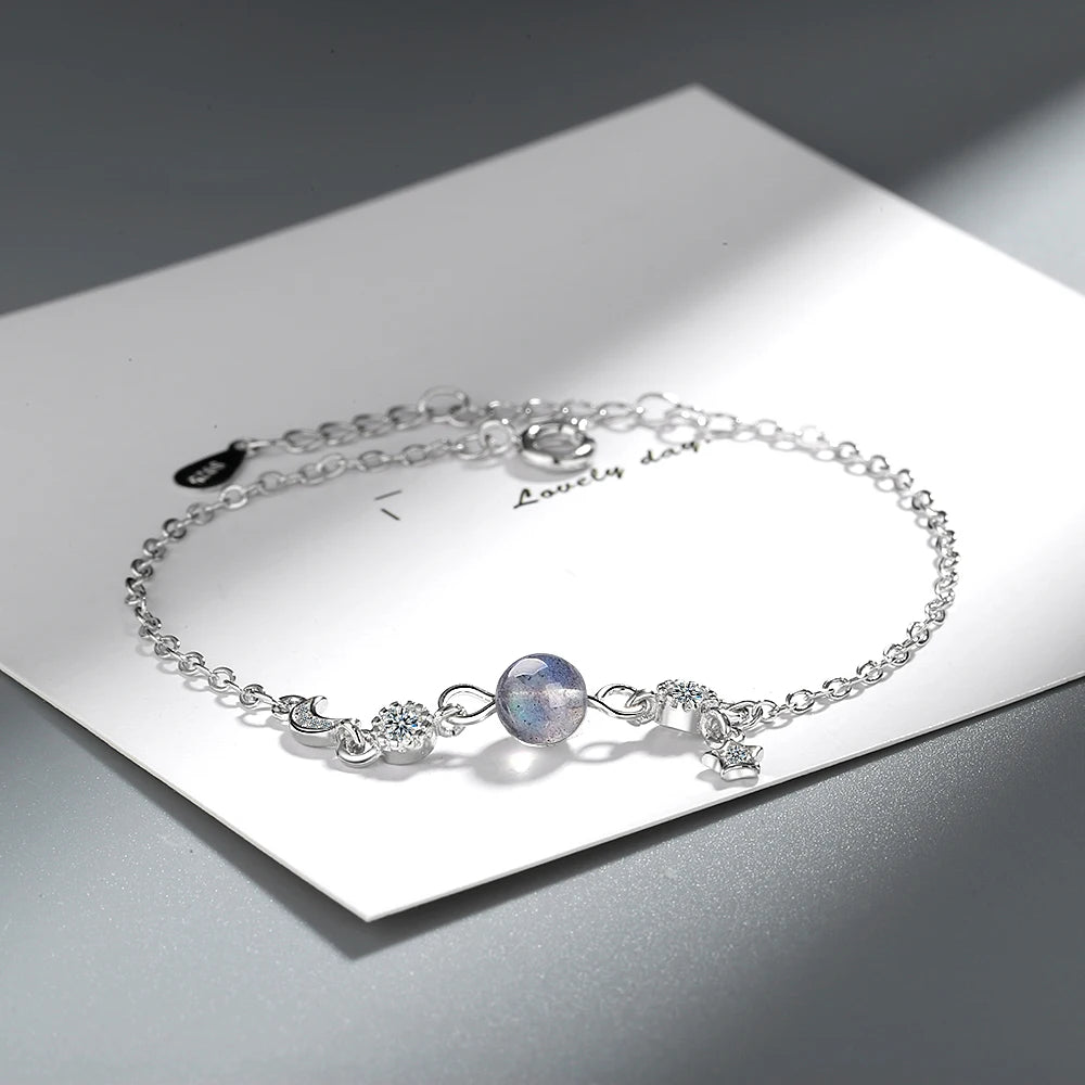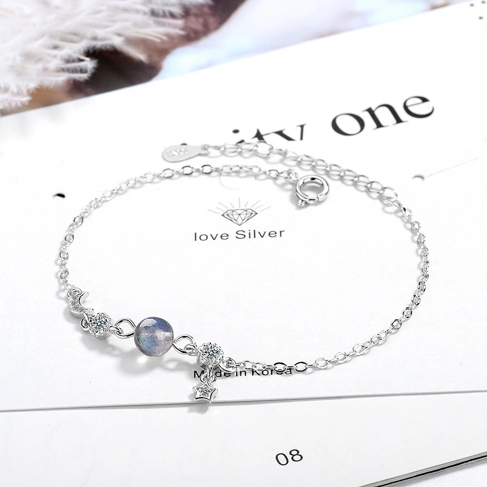 Sterling Silver Moonstone Bracelet Moon Star Tassel CZ Summer Jewelry Gift