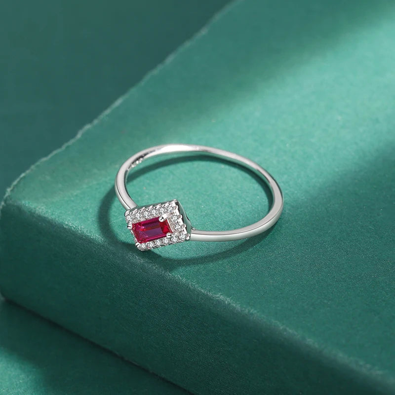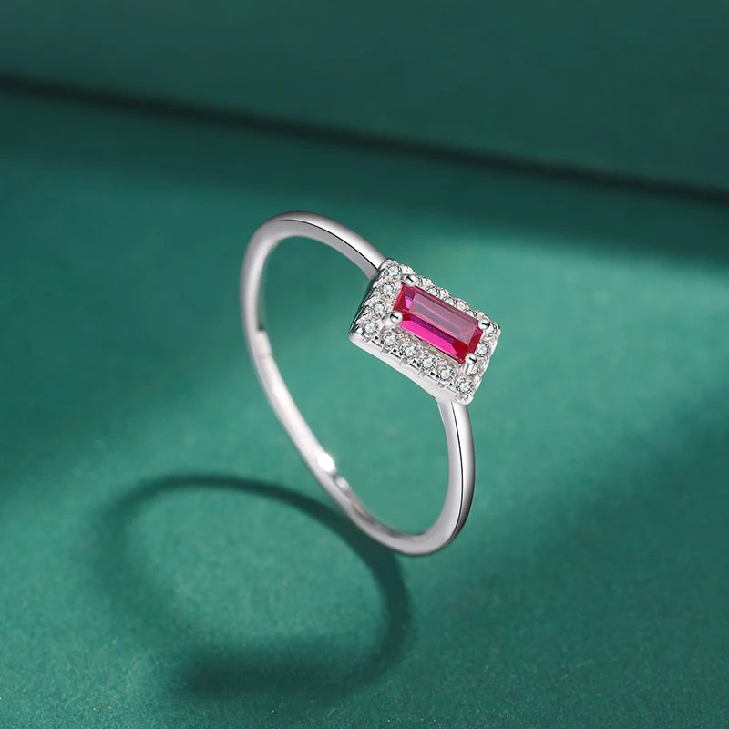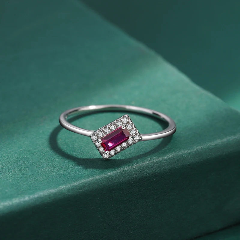 Elegant and classic couple ring featuring a stunning ruby pink baguette full diamond design. Crafted from high-quality sterling silver, this ring makes a perfect engagement gift for your loved one.