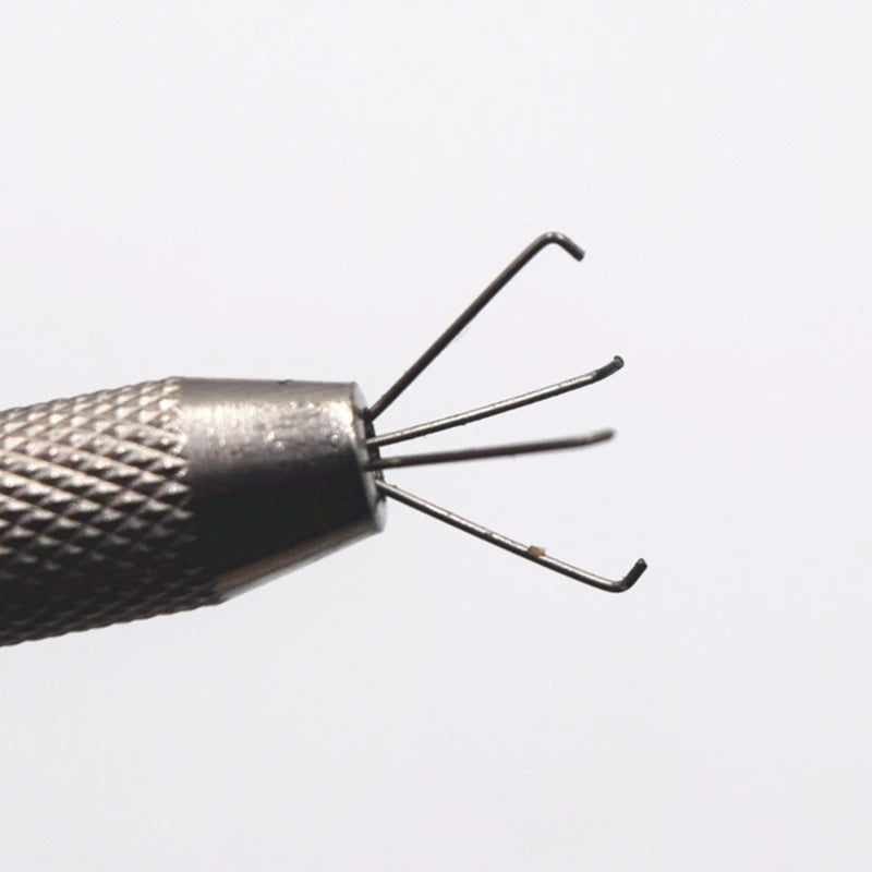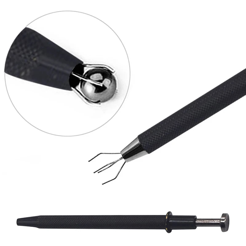 This body piercing tool is made of surgical steel and includes a quad prong small bead holder for secure and easy piercing.