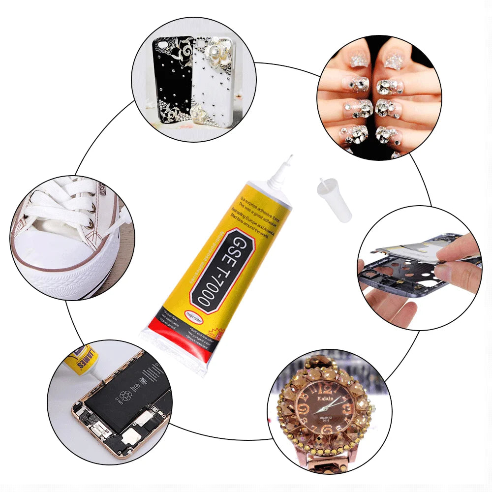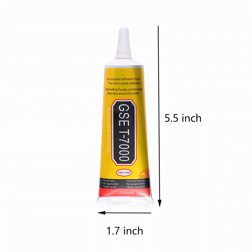 This T-7000 glue is a multi-purpose adhesive perfect for DIY projects, handicrafts, glass, and phone repairs. It comes in a 110ml bottle and is made of epoxy resin.